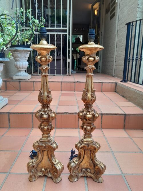 A 20th Century-Style Gilt Painted Pair Of Tall Lamp Bases