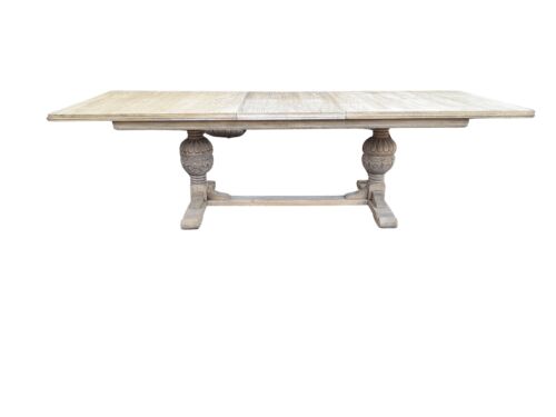 A 20th Century French Style Carved Oak Dining / Refectory Draw Leaf Table in a Contemporary Bleached Finish (10 Seater) (Option to add a marble or granite top, quote available)