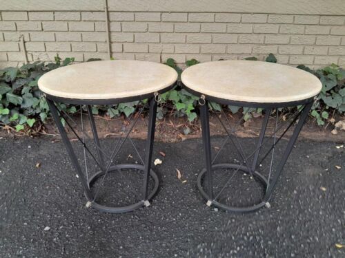 2 X A Pair Of Custom-Made For The Crown Collection Circular Wrought Iron Tables And Cream Marble Tops