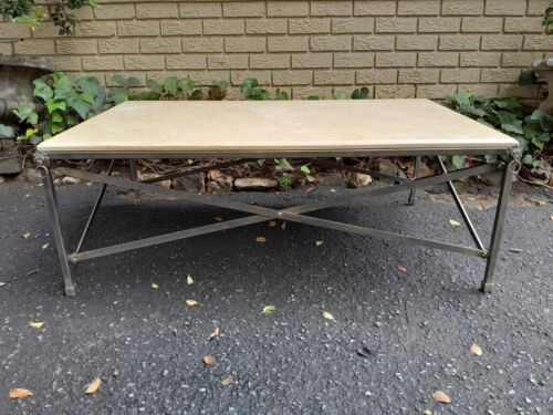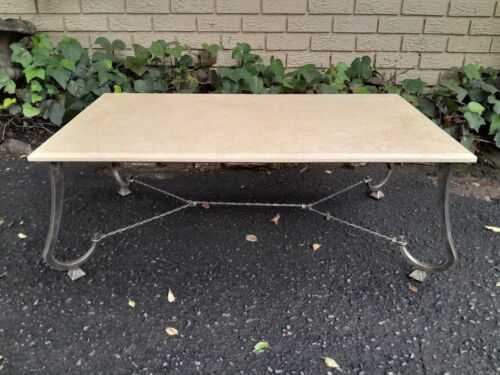 A Custom-Made For The Crown Collection Wrought Iron Coffee Table In An Antique Gold Finish With Marble Top