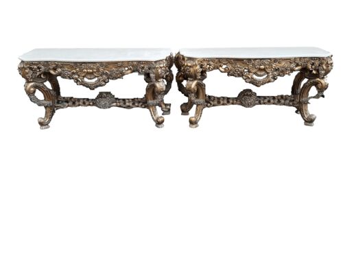 Ornate and Carved Hand-Gilded Console Table with Marble Top