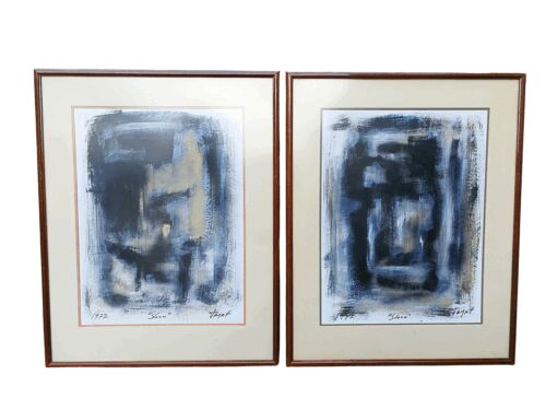 A Decorative Pair Of Gold / Charcoal / Grey With Off White Speckles Side Table / Seating Stool / Decorative Accessory