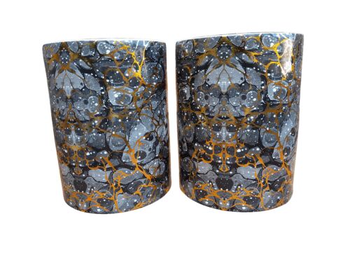 A Decorative Pair Of Gold / Charcoal / Grey With Off White Speckles Side Table / Seating Stool / Decorative Accessory