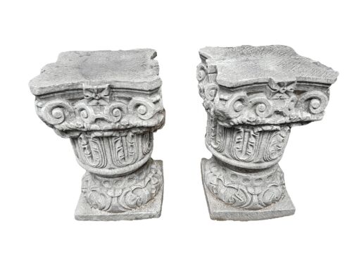 A Pair Of Circa 2005 Aged Concrete Table Bases / Architectural Plinths