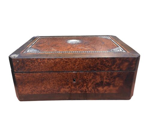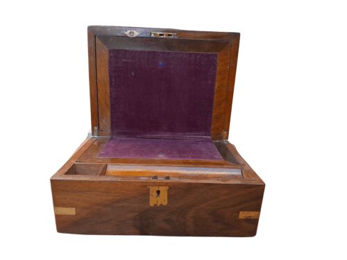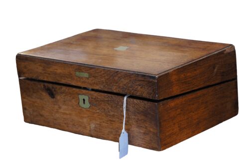 19th Century antique writing slopes were a hinged box that opened to reveal a sloping writing surface with compartments for stationery, ink wells and ink pen and were generally used when travelling.