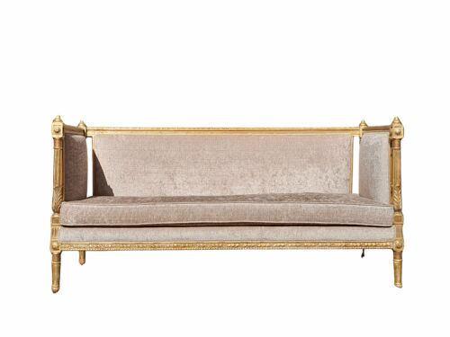 A French Louis XVI Style Carved Giltwood Settee / Day Bed