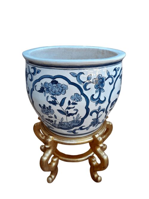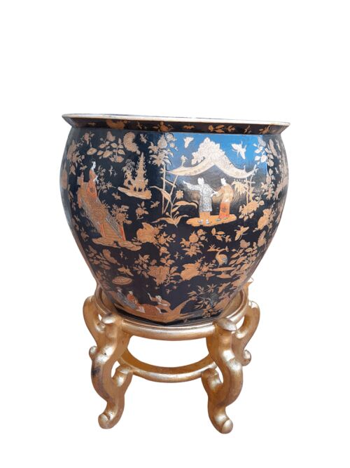 A 20th Century Chinese Famille Large Size Decorative Bowl On Carved And Hand Gilded Stand