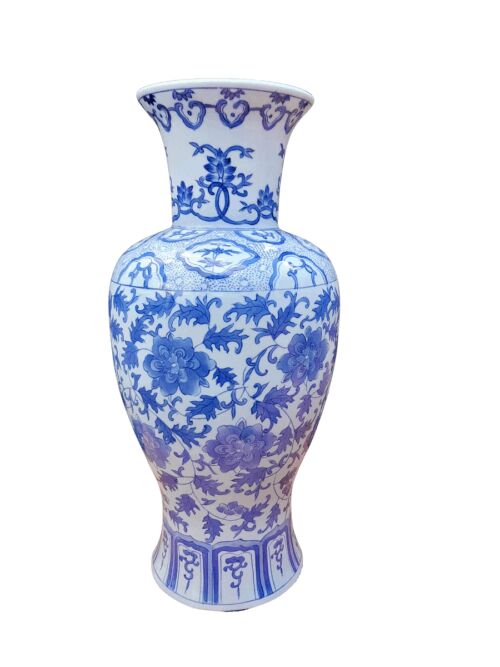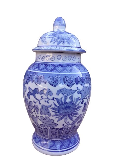 A 20th Century Chinese Blue And White Painted Vase With Lid