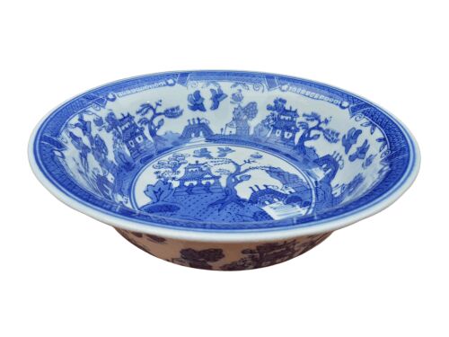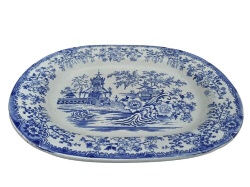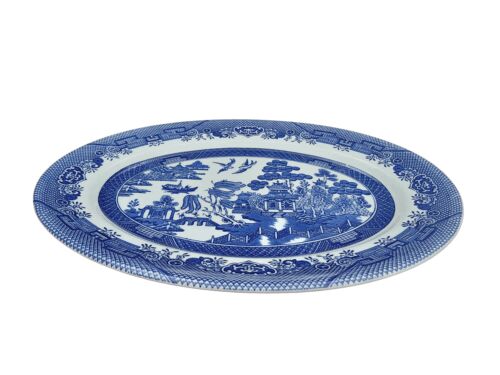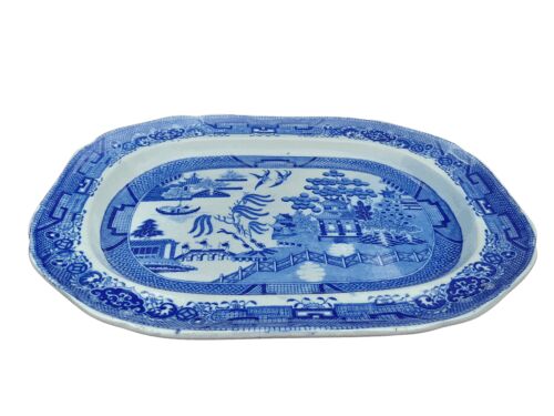 An Antique Blue and White Willow Pattern Porcelain Platter