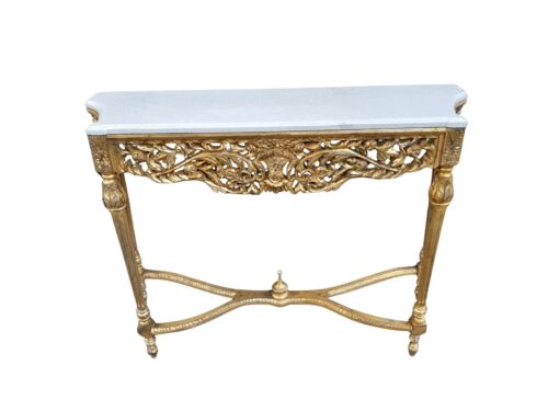 A 20th Century Ornately Carved And Hand-Gilded Console Table With Marble Top