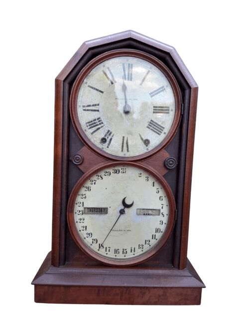 An Antique Late 19th Century Mahogany Calendar Clock With Date And Time Dials