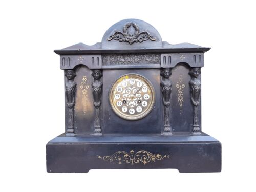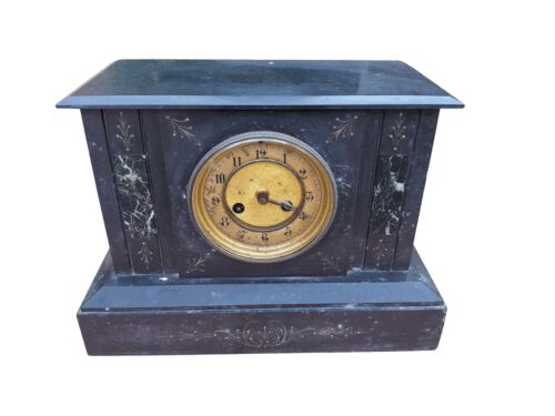 An Antique 19th Century French Style Black Slate Quartz Clock