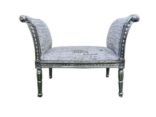 A French Style Window Bench / Seat In Silver Gilt And Upholstered In Ticking / Pinstripe Fabric