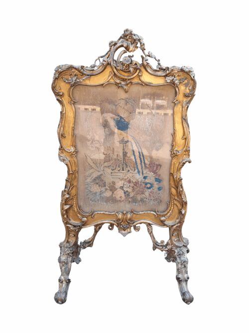 A 20TH Century French Louis XV Style Ornately Carved Giltwood Fire Screen With Tapestry