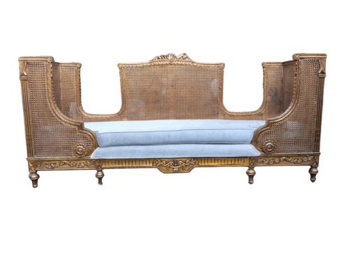 A French Style Hand Gilded Rattan Settee / Day Bed With Seat Cushion