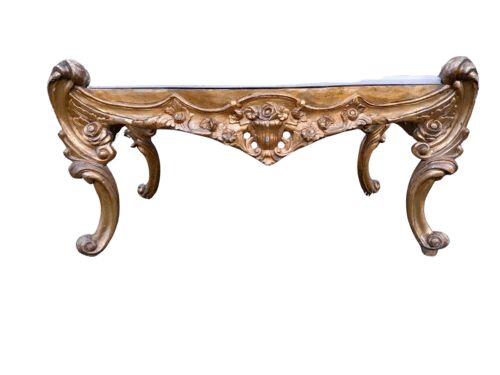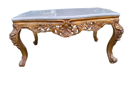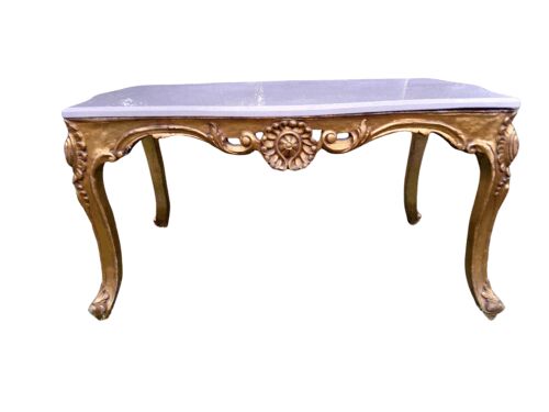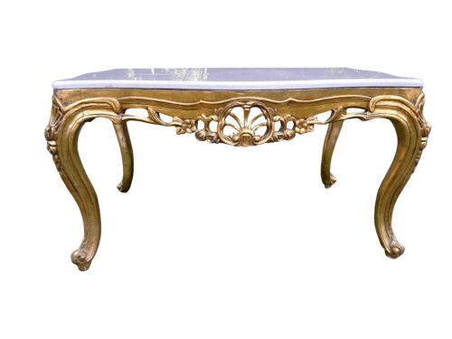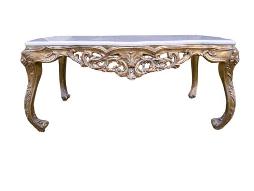 A 20th Century Heavily Carved and Hand Gilded with Gold Leaf Console Table with Cream Marble Top