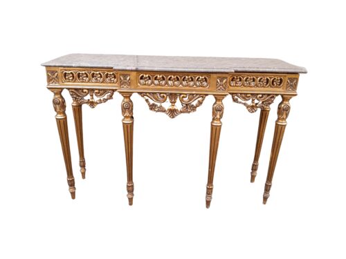 A 20th Century French Style Hand-Gilded Console Table with Marble Top ND