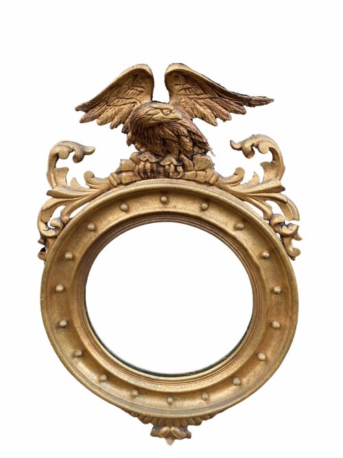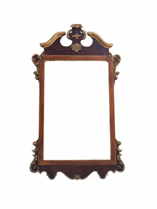 Georgian Style Mahogany & Gilded Mirror with Swan Neck & Pediment