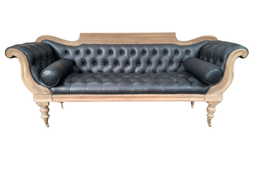 An Antique 19th Century Chesterfield Settee With Original Leather And Castors