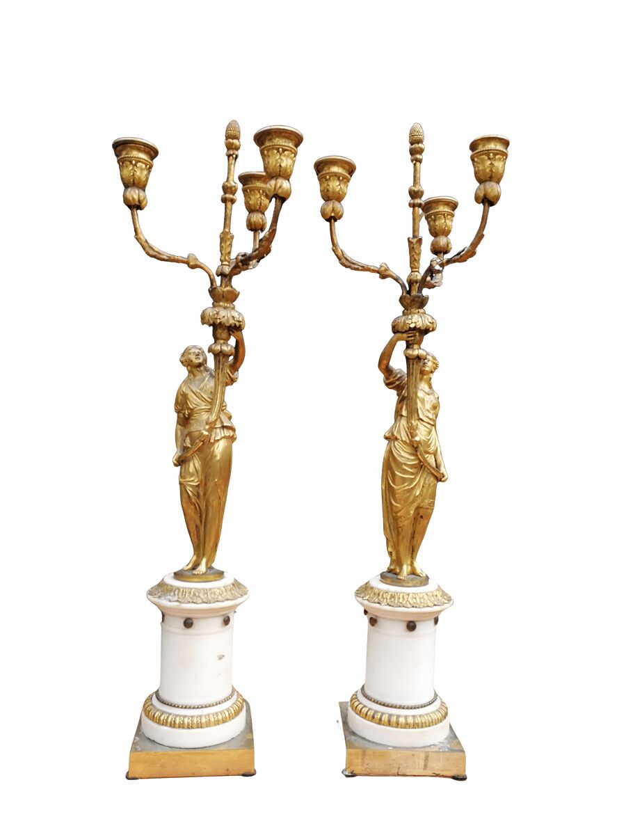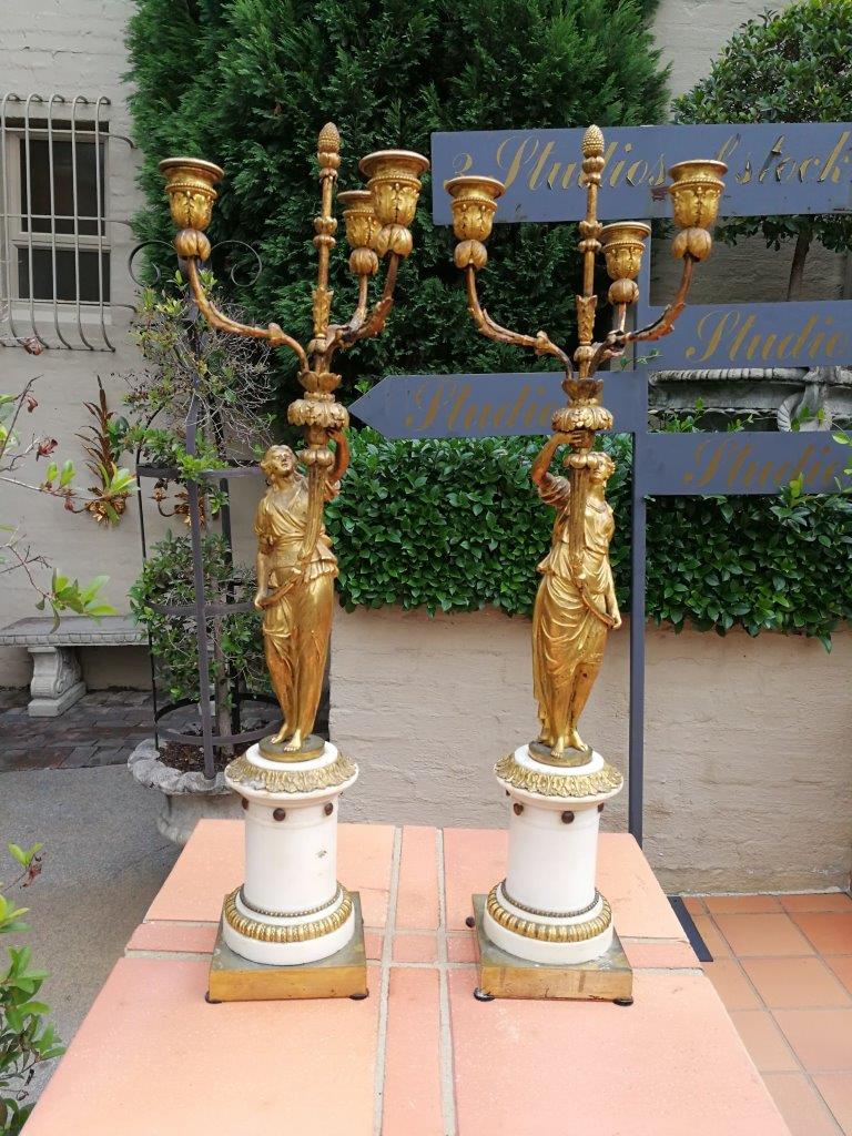 19th Century pair of French ormolu bronze candelabras