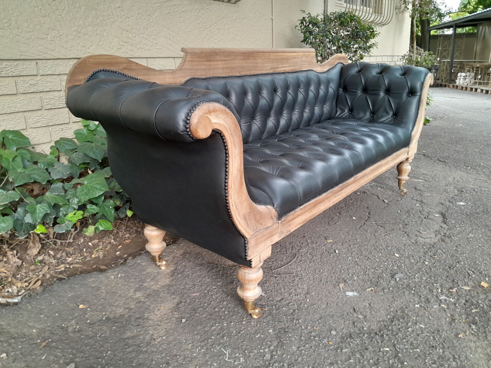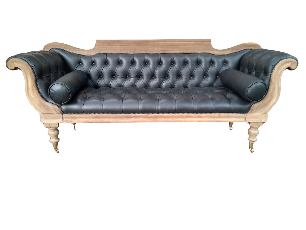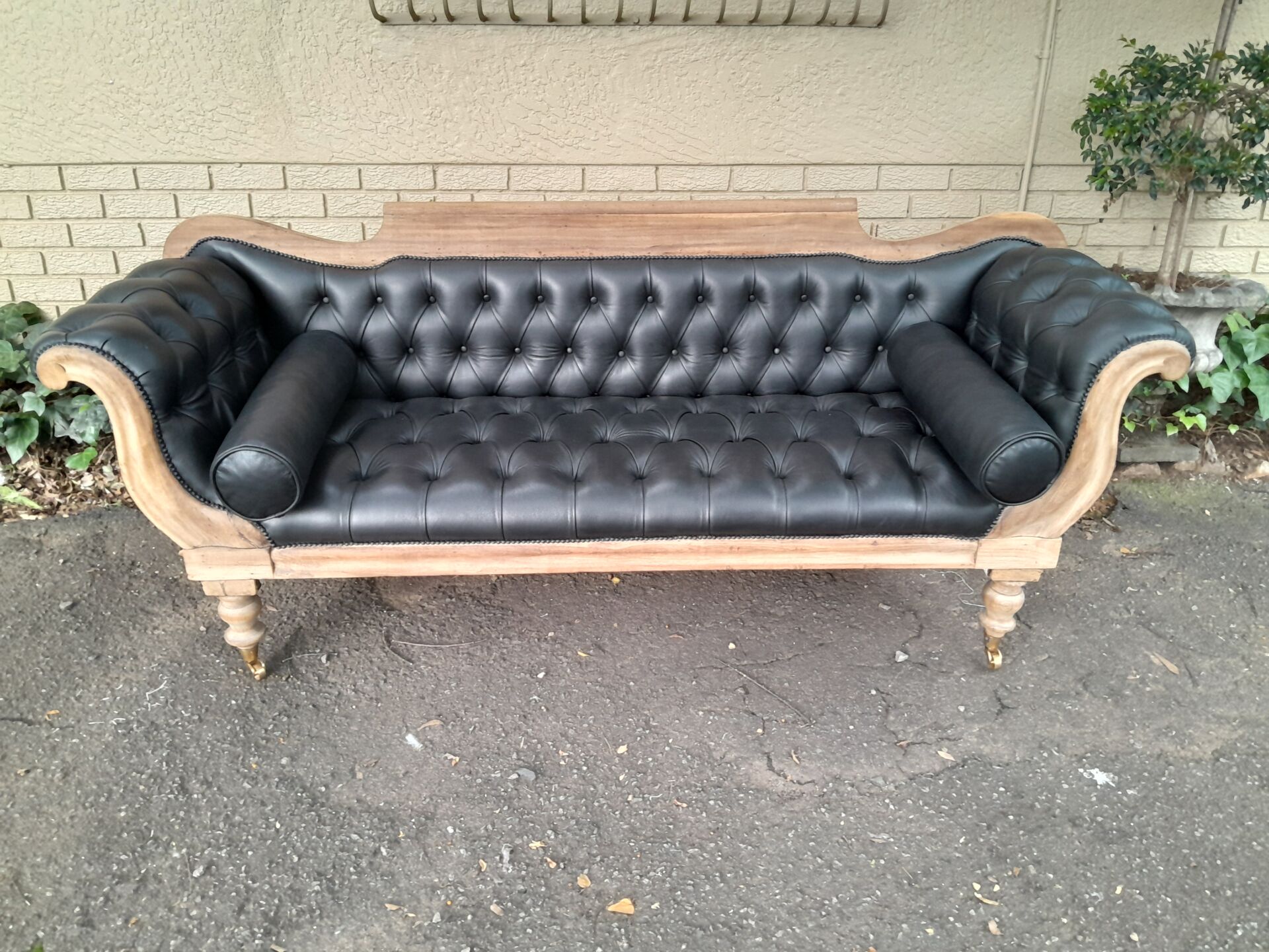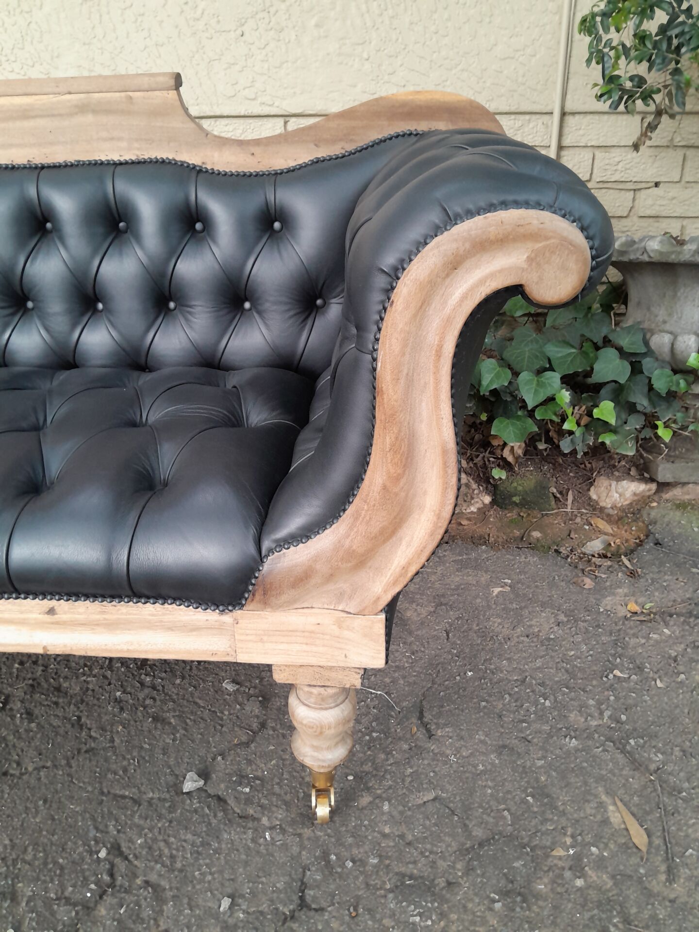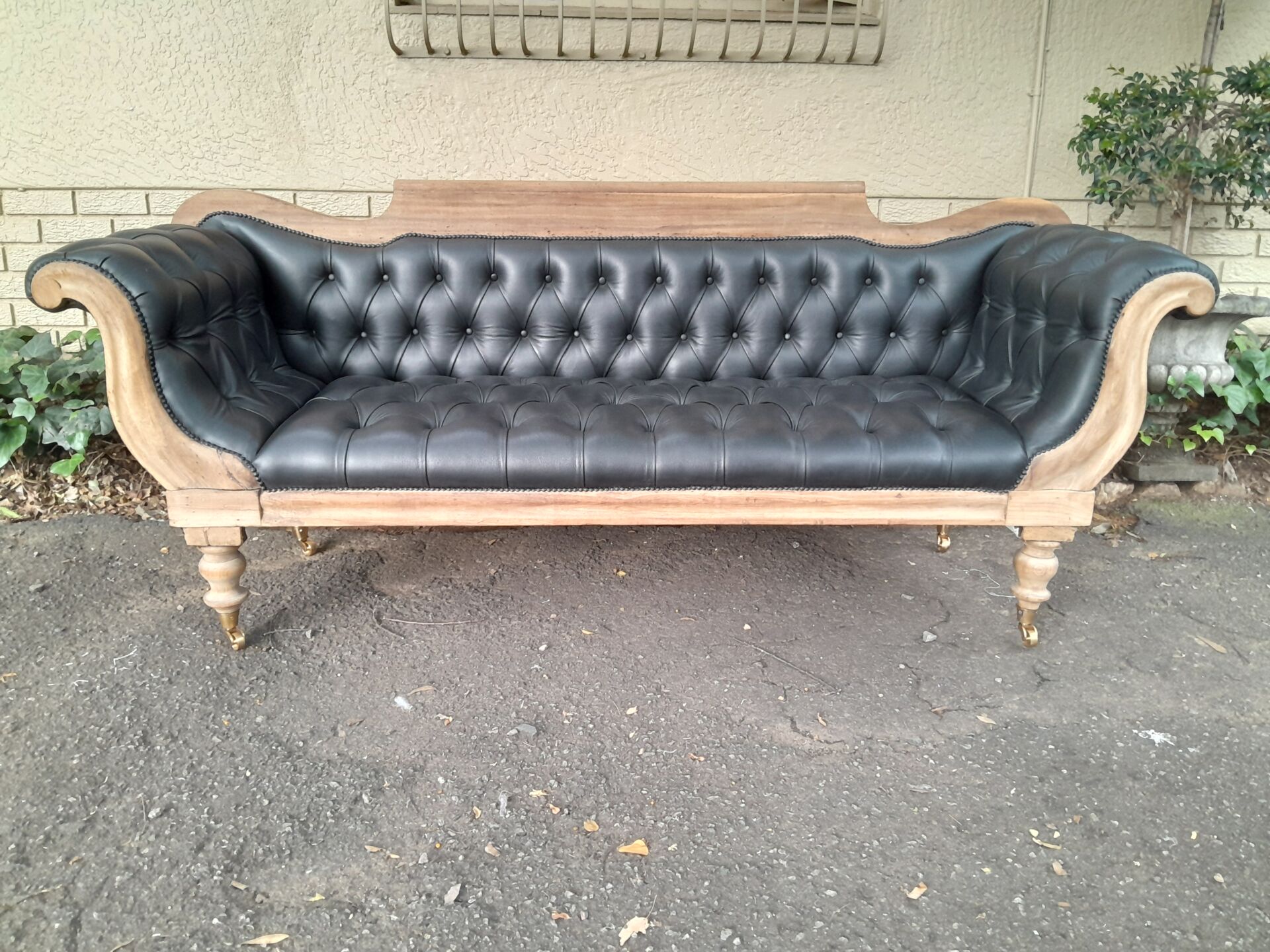 A 19th Century Africana Stinkwood Settee / Chaise Longue in a Bleached Contemporary Finish and Upholstered in Leather