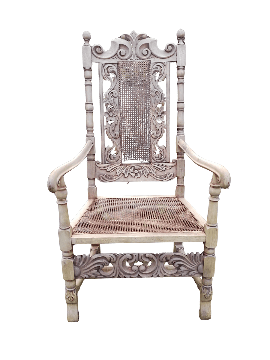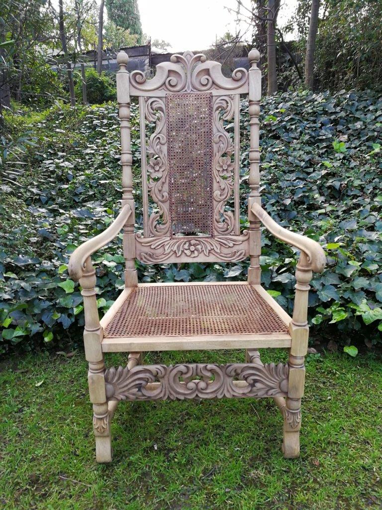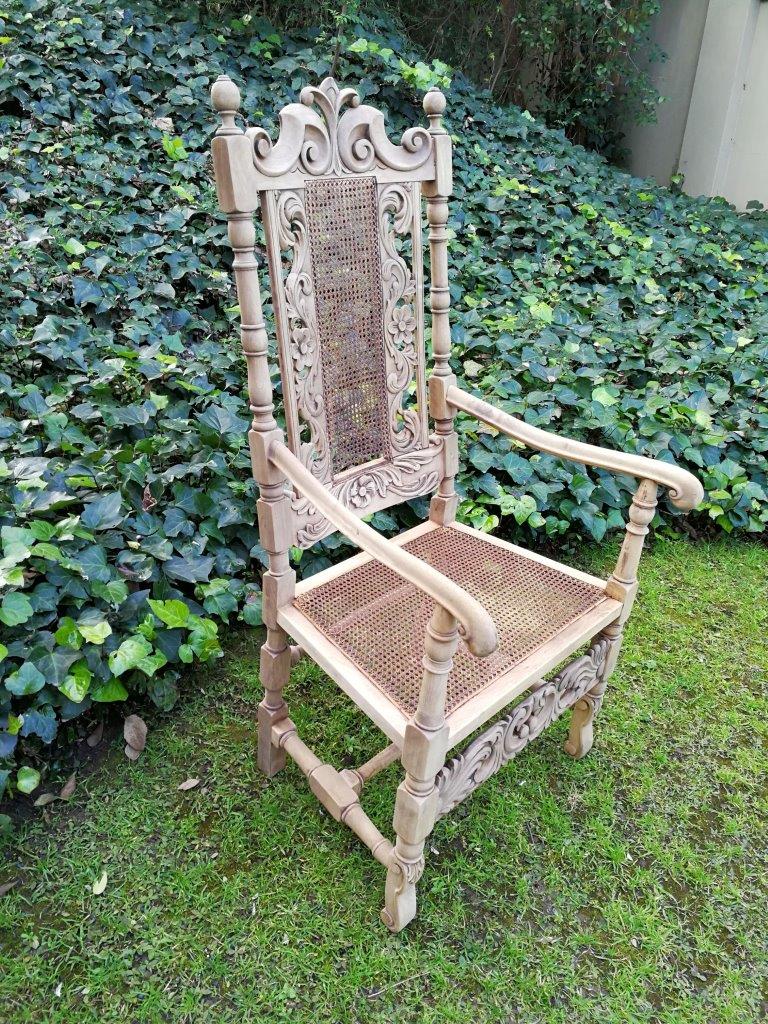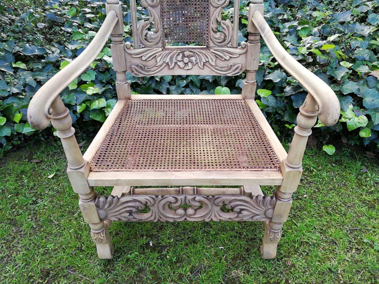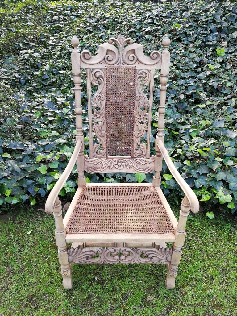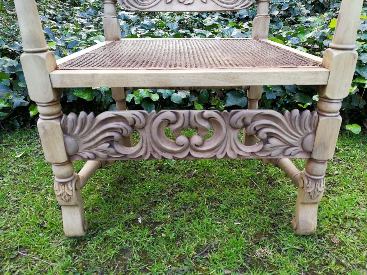 A 19th Century Charles II Style Carved Walnut Armchair In A Natural Bleached / Natural Wood Finish
