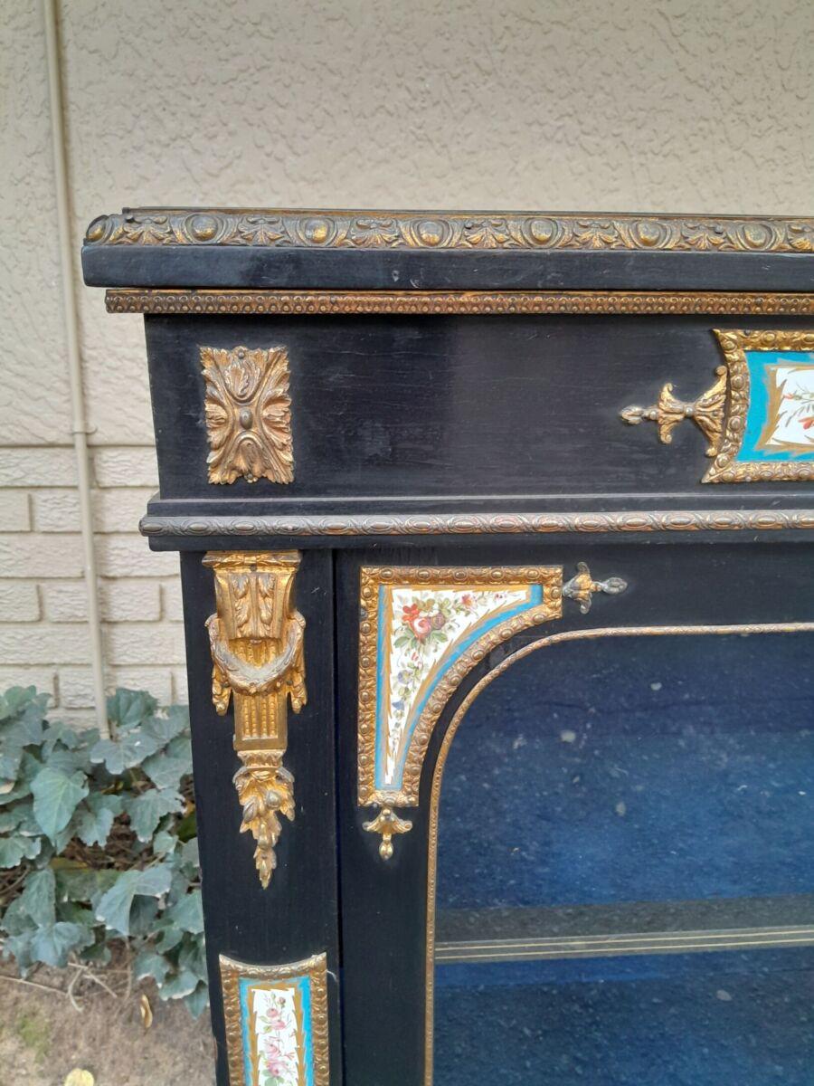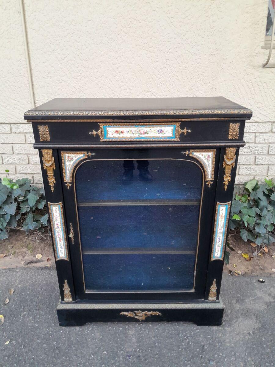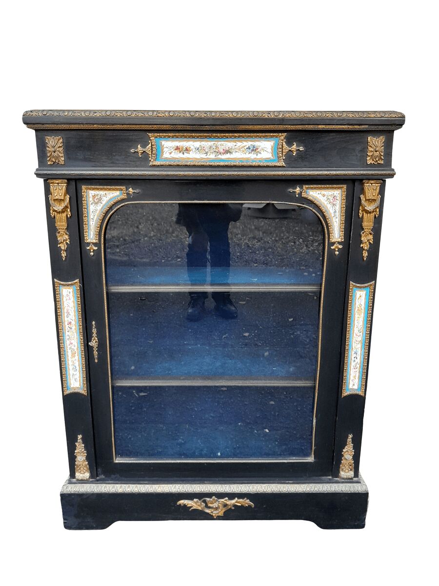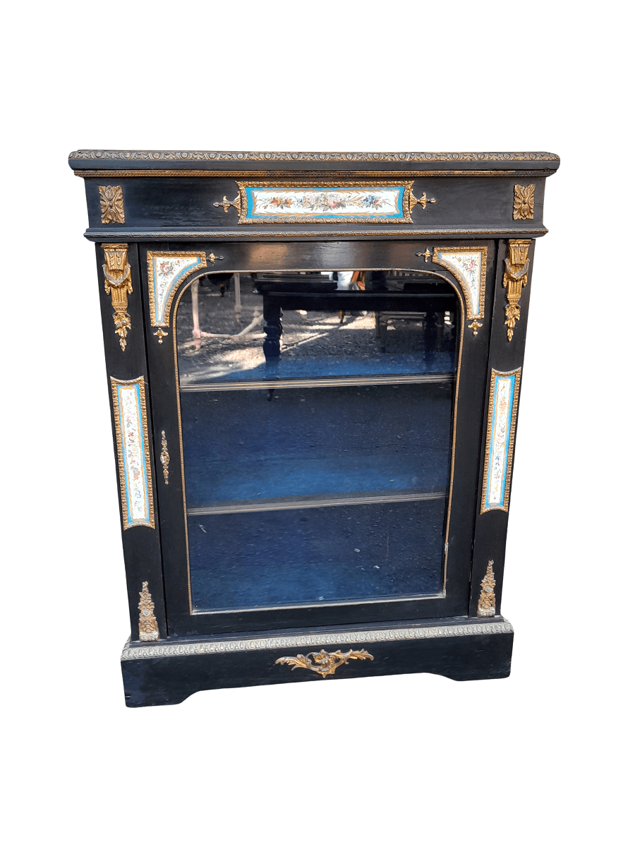 A 19th Century French Ebonised Pier Cabinet And Ormolu Mounts And Porcelain