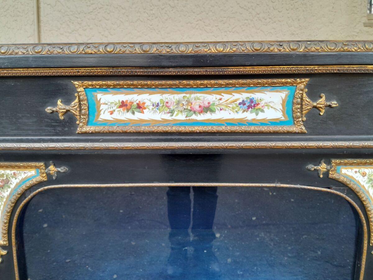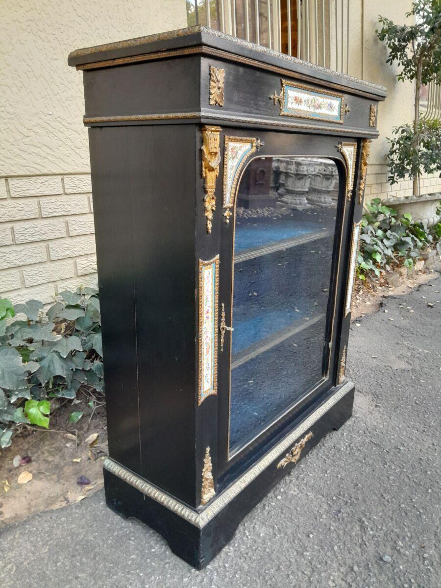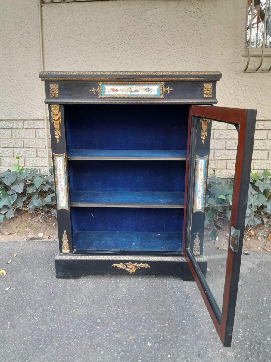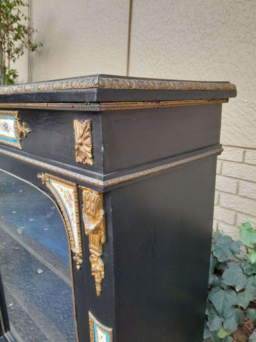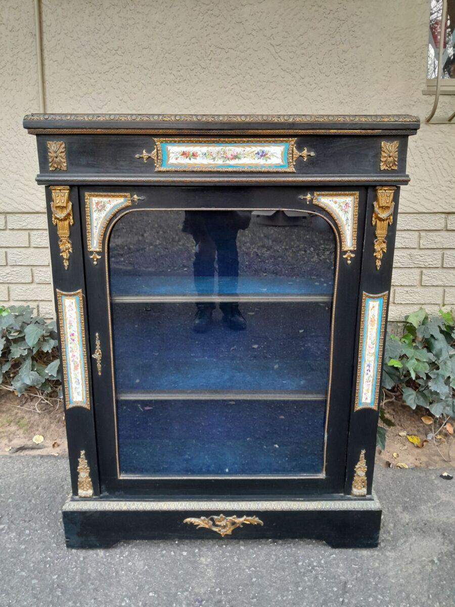 A 19th Century French Ebonised Pier Cabinet And Ormolu Mounts And Porcelain