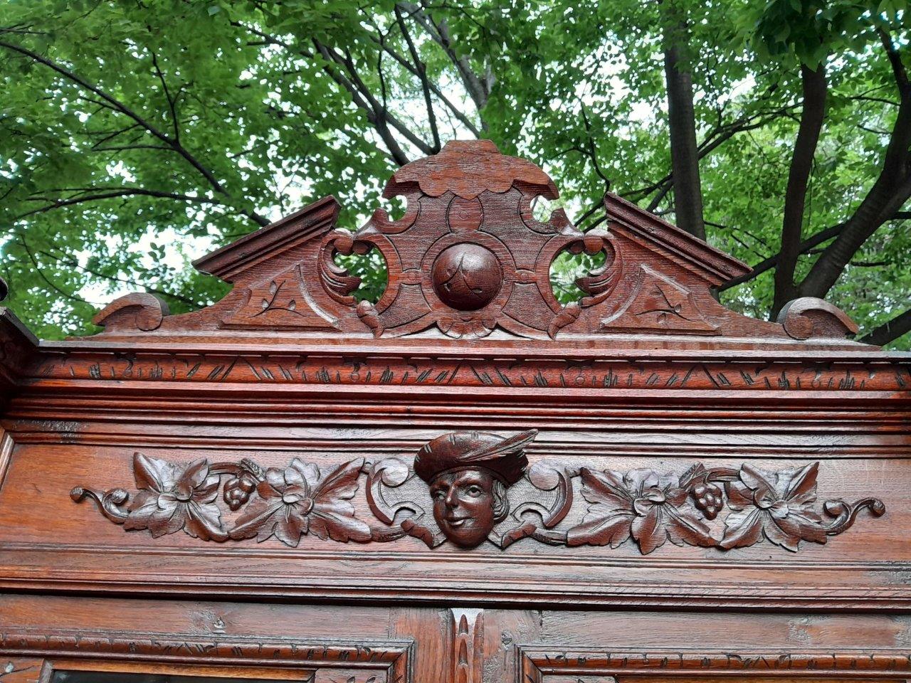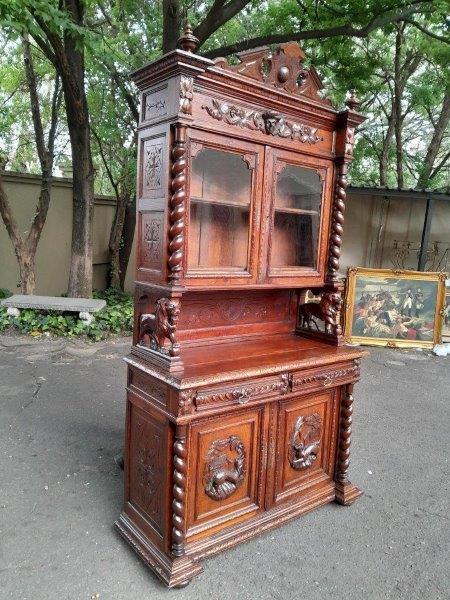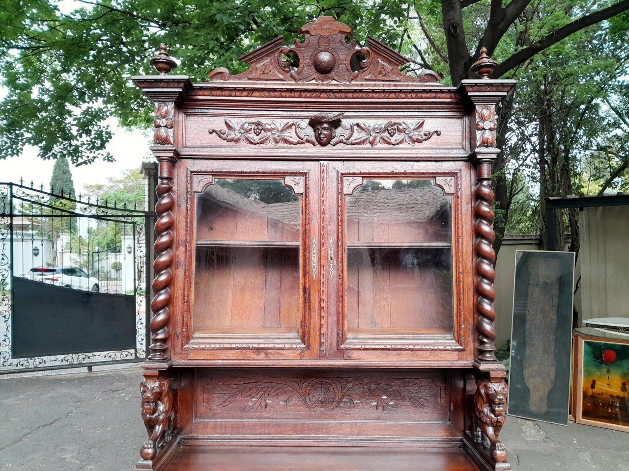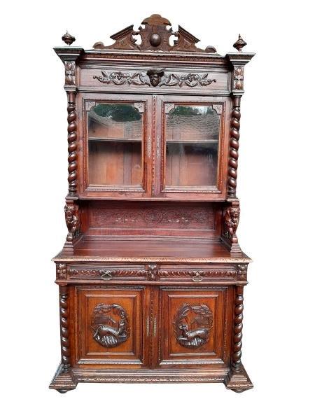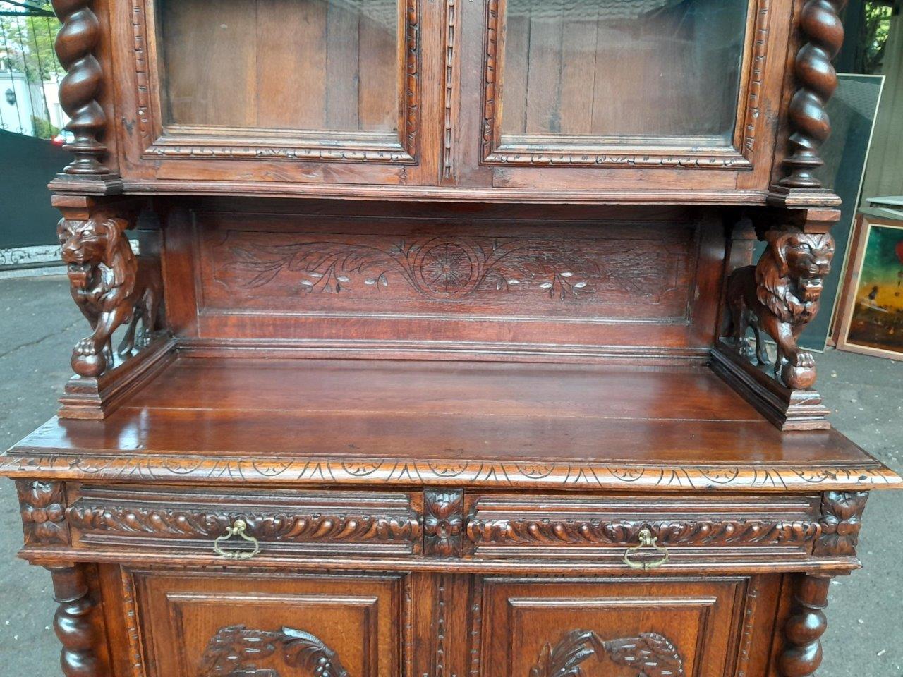 A 19th Century French Heavily Carved Oak Buffet With Glazed Doors