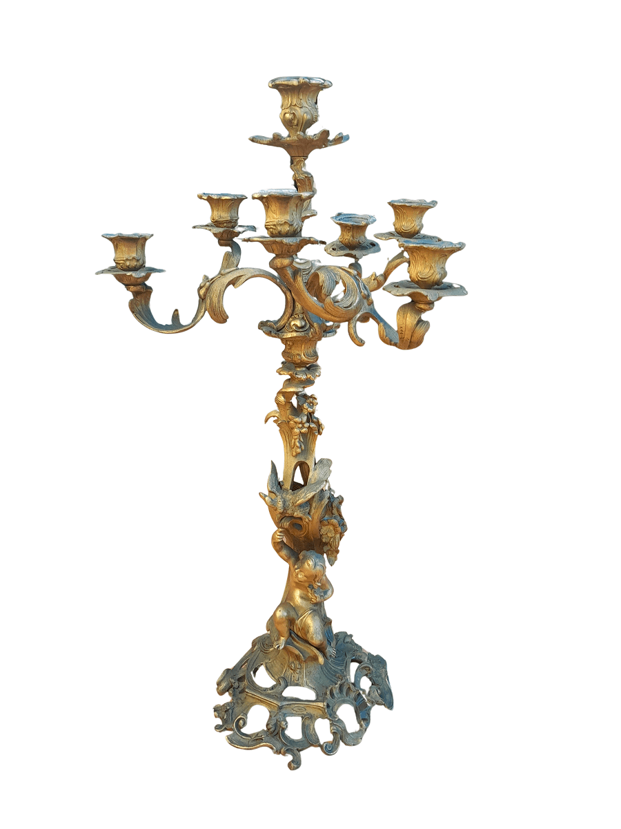 A 19TH Century French Ormolu Gilt Rococo Style Candelabra