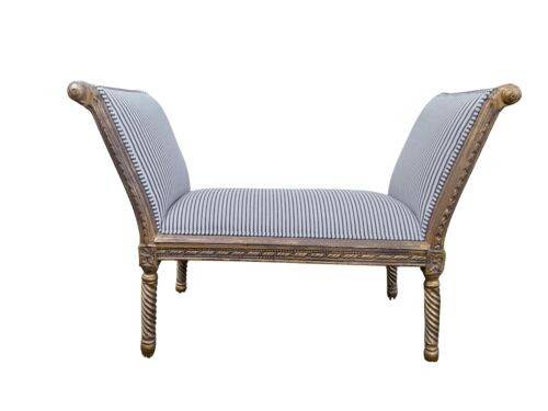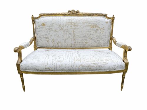 A 19th Century Ornately Carved Walnut Wood Settee Hand Gilded With Gold Leaf And Upholstered In A Linen Fabric