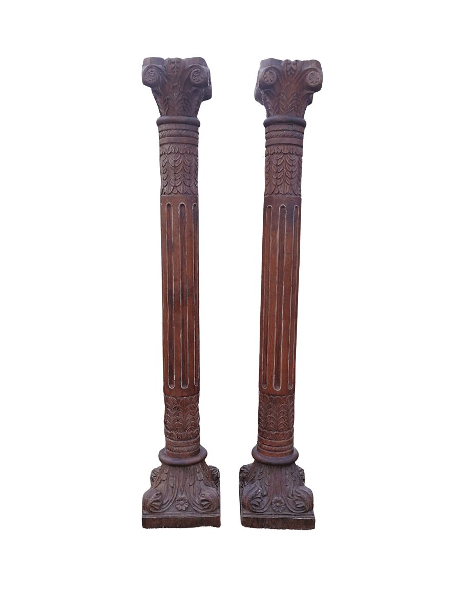 A 19TH Century Pair of Carved Teak Architectural Pillars