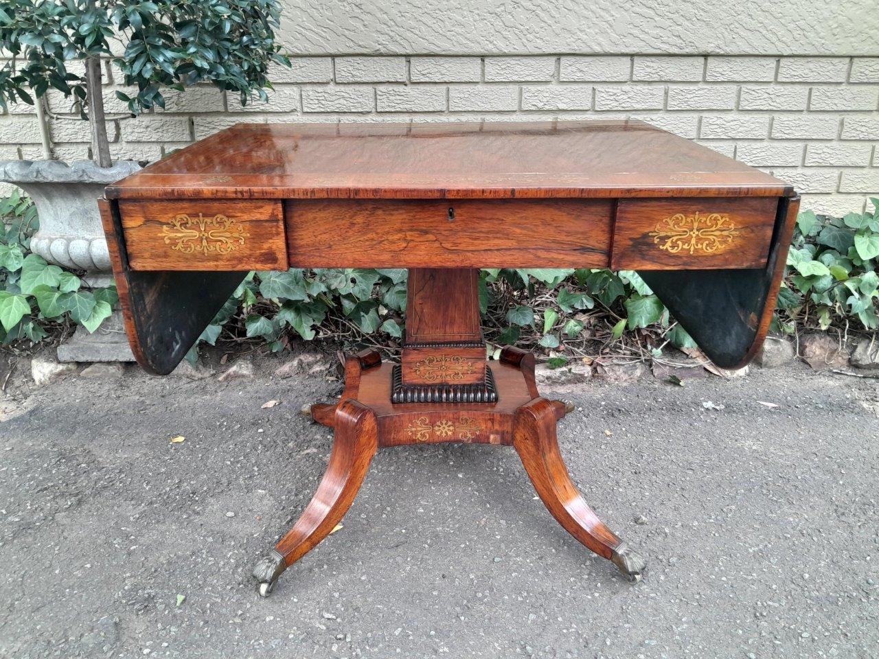 A 19th Century Victorian Brass Plated Rosewood Sofa Drop Side Table With Brass Inlay and on Brass Lion Paw Feet