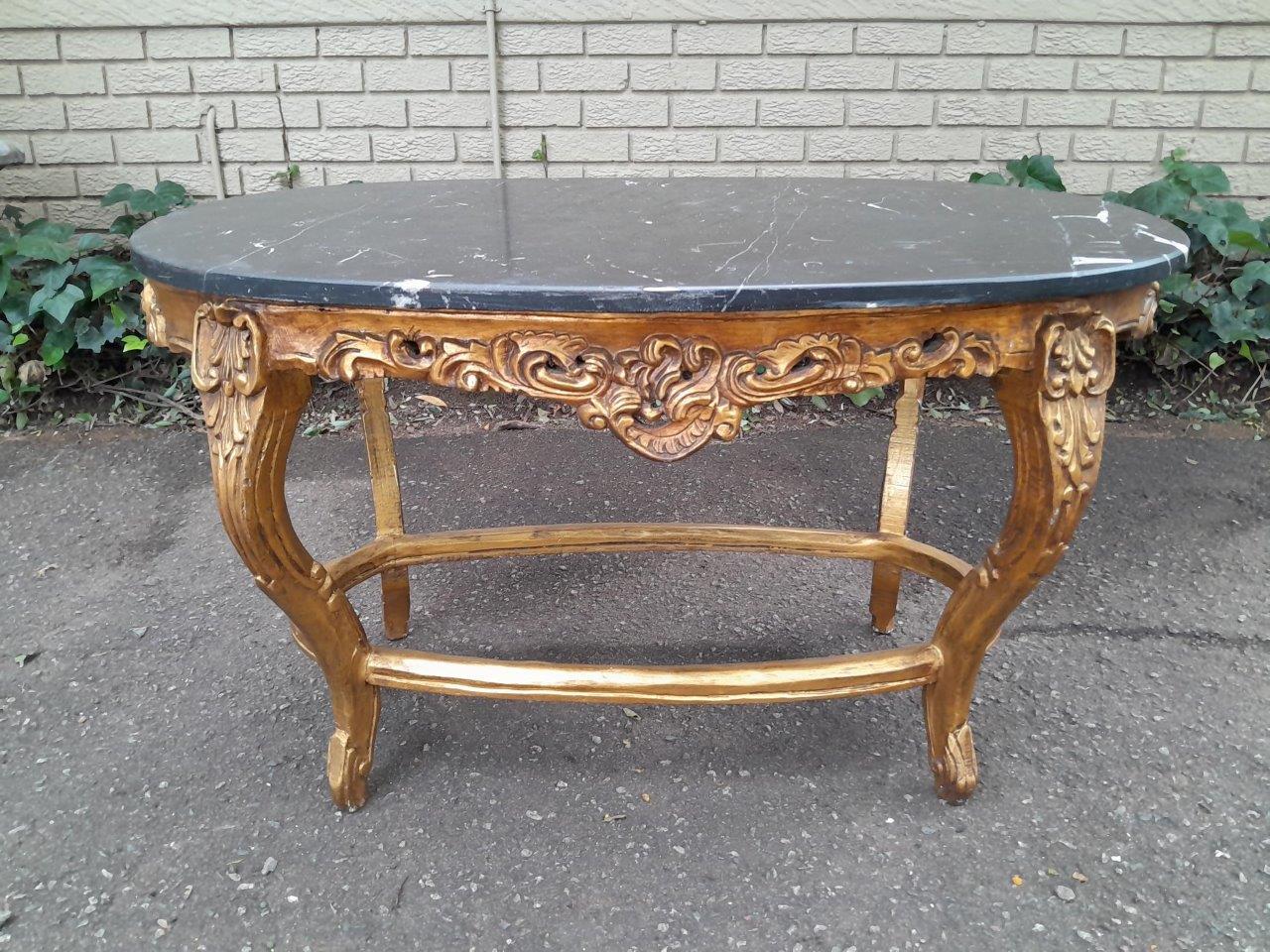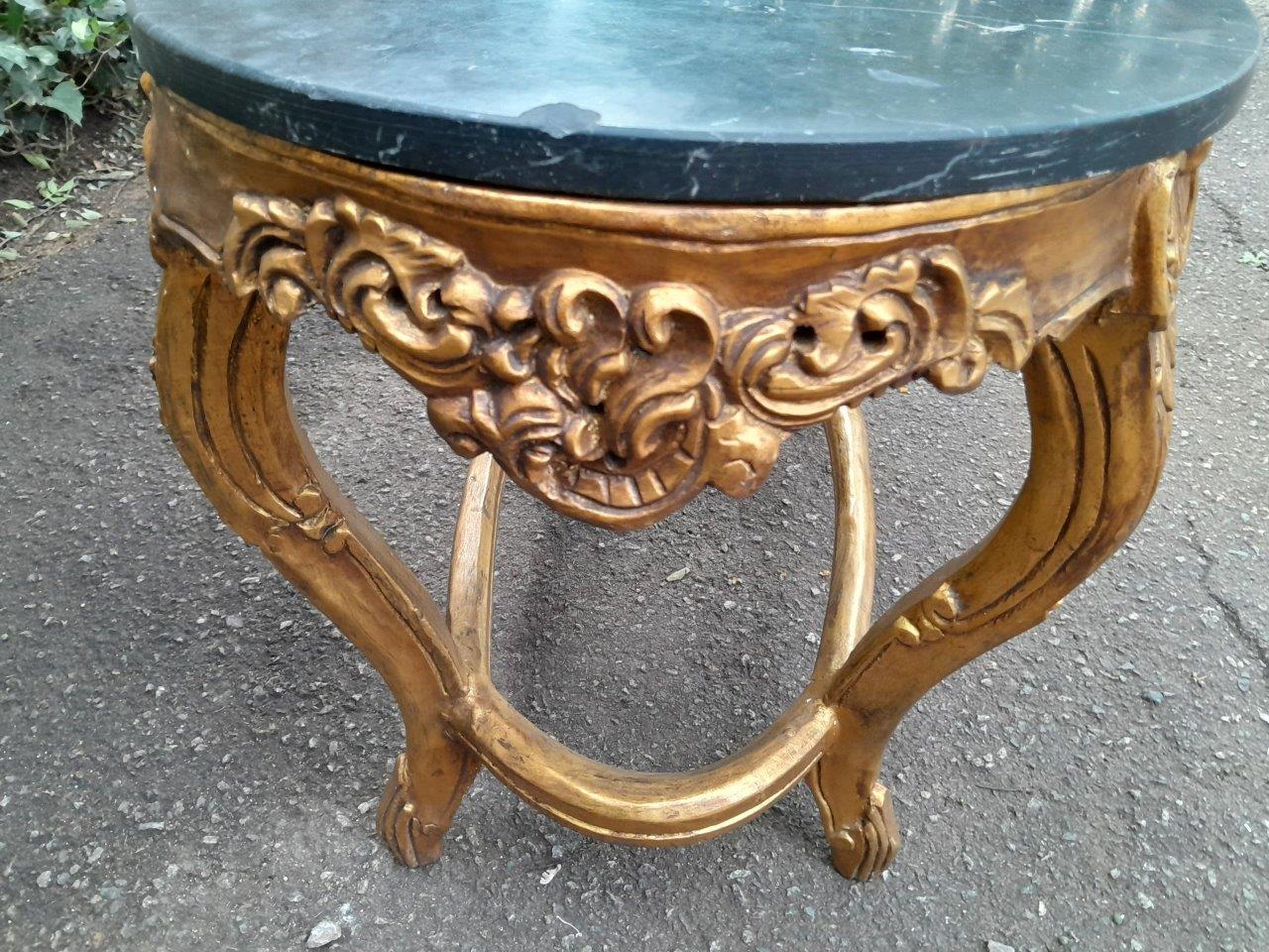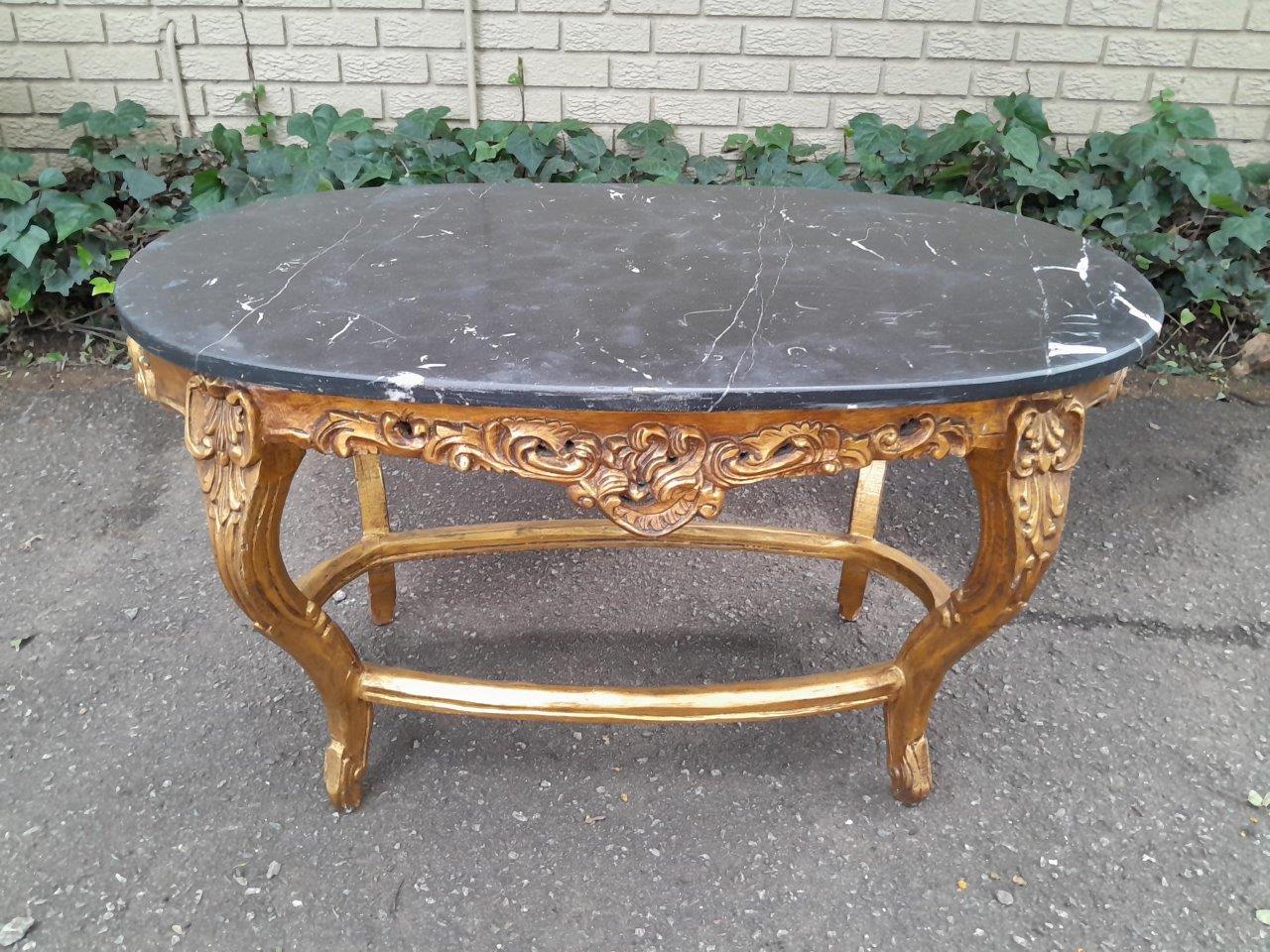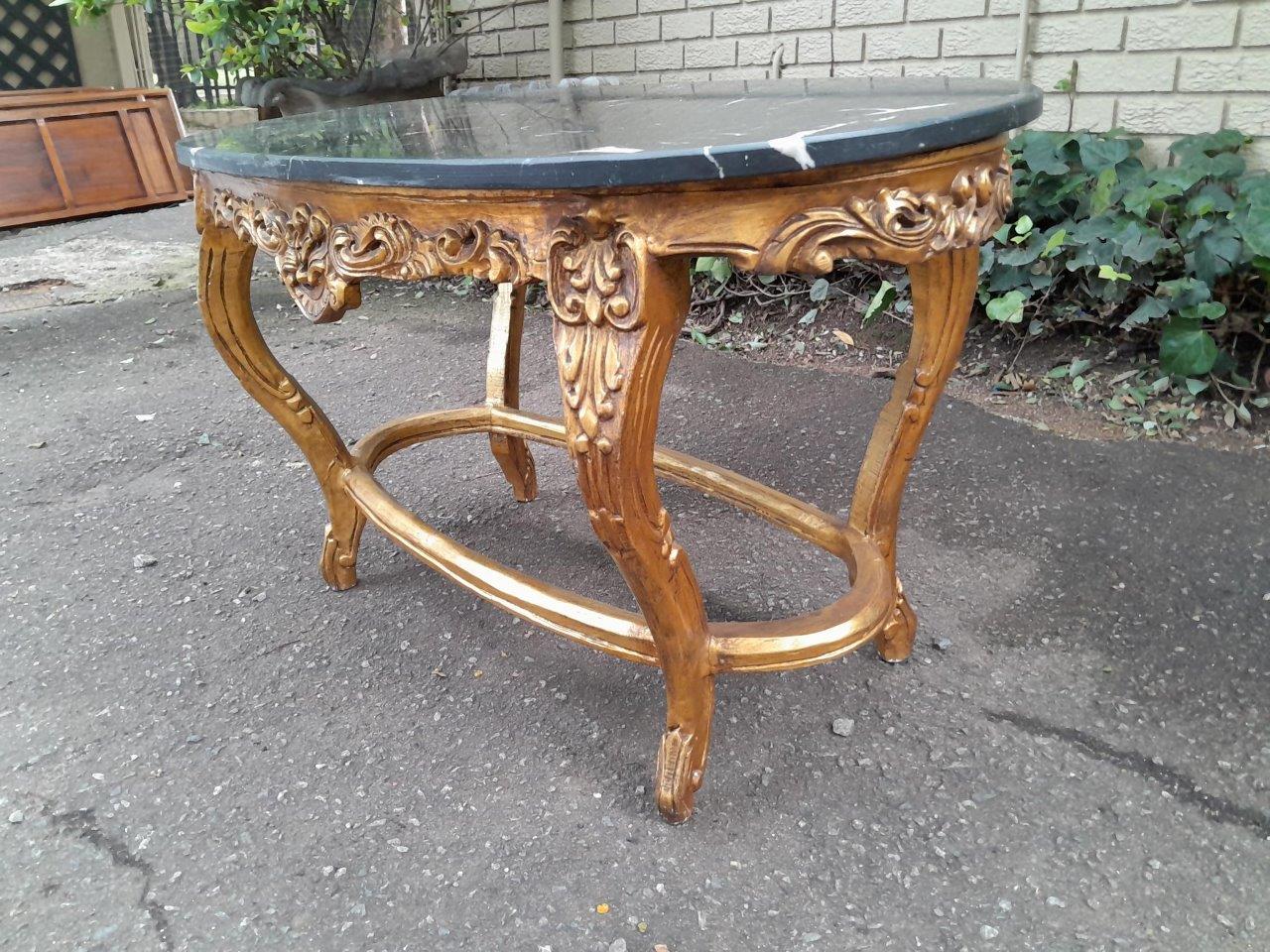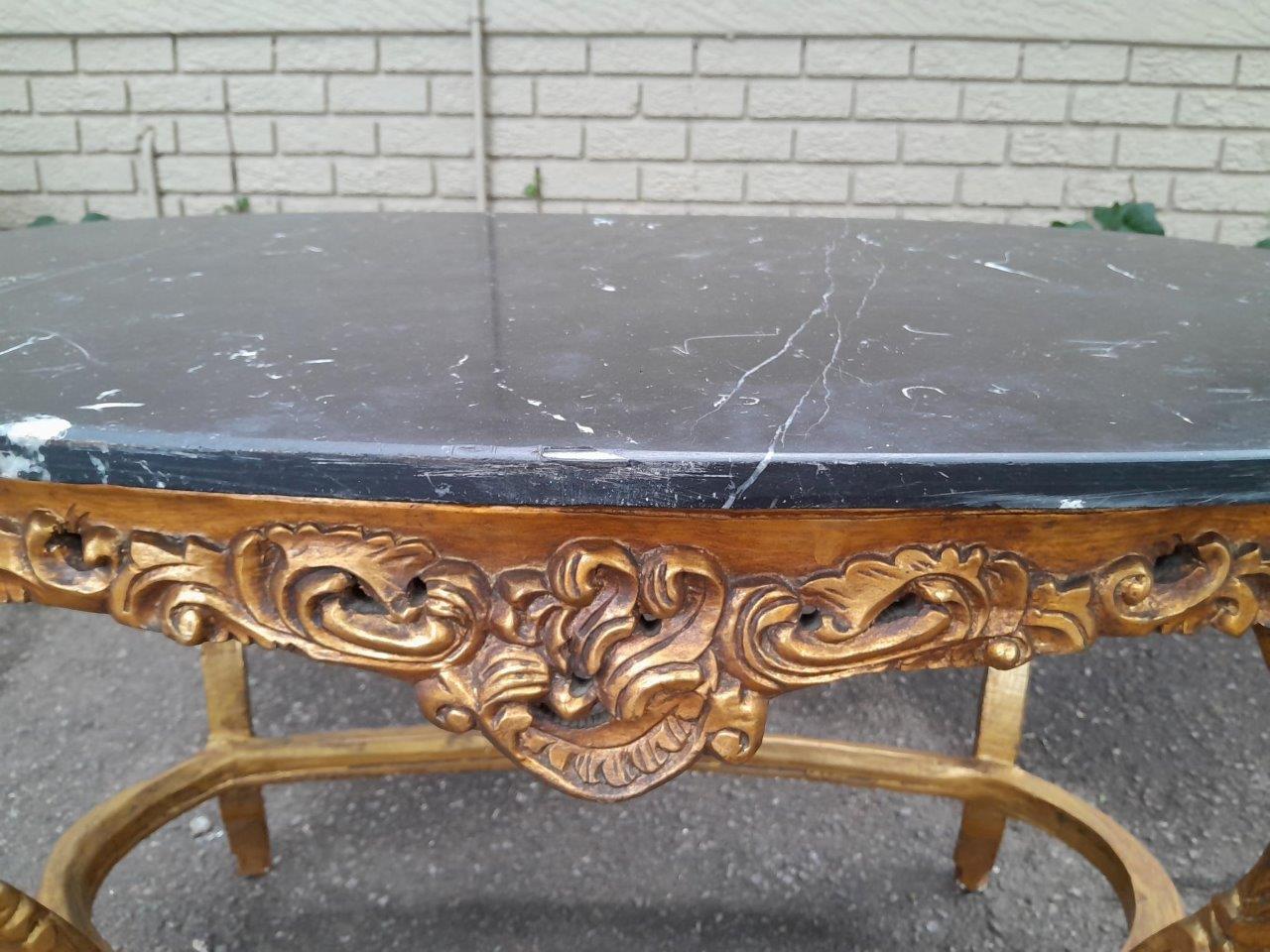 A 20th Century Baroque Style Orrnately Carved And Gilded Wooden Coffee Table With Marble Top ND
