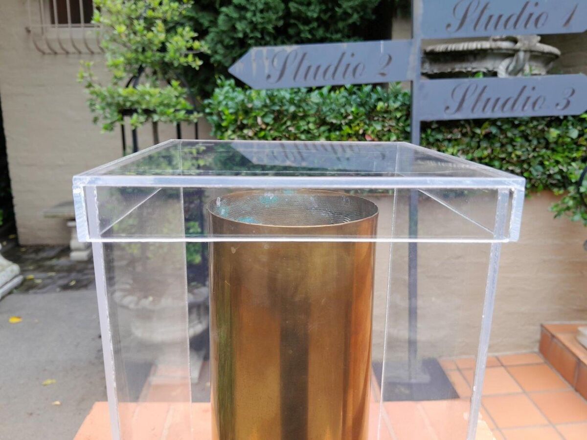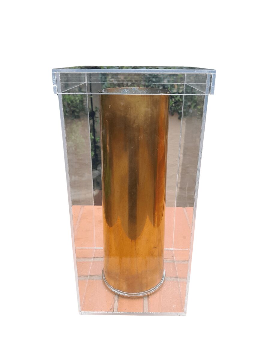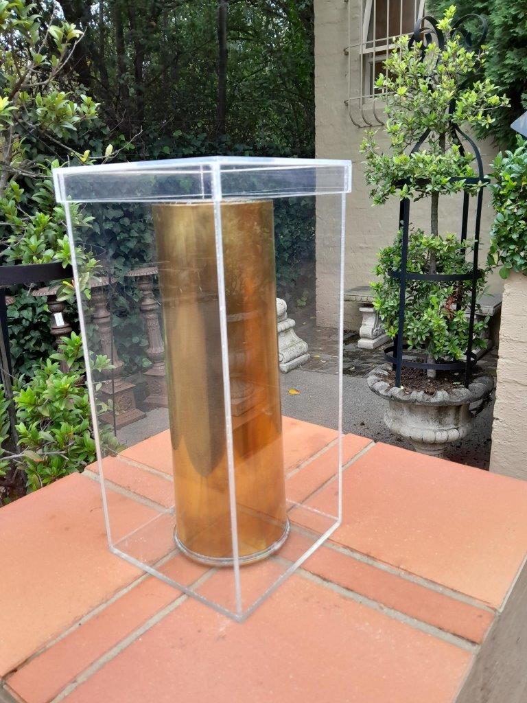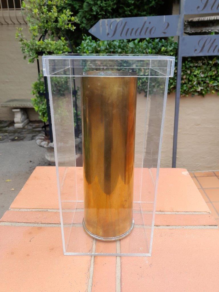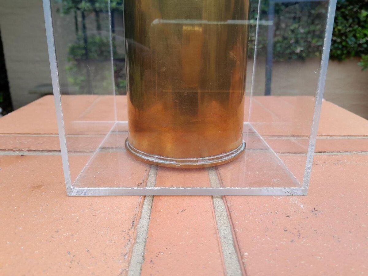 A 20TH Century Brass Cannon Shell In A Custom-Made Display Perspex Box