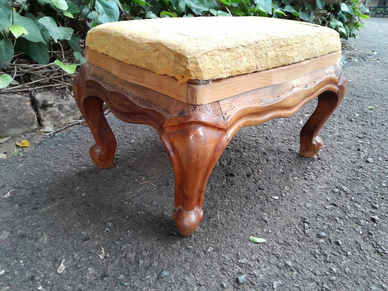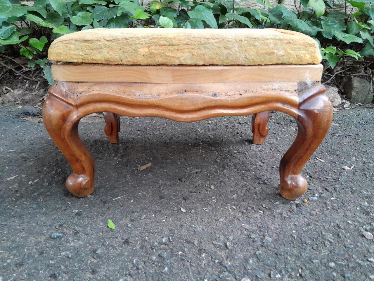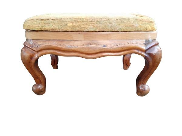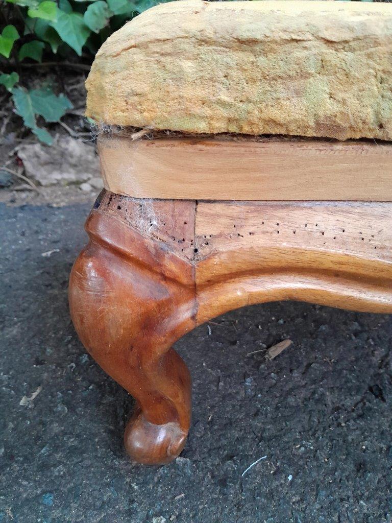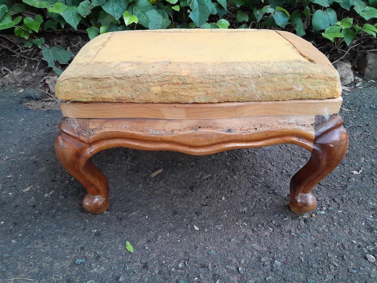 A 20th Century Carved Mahogany Footstool Upholstered In Deep Buttoned Leather (Still To Be Upholstered)