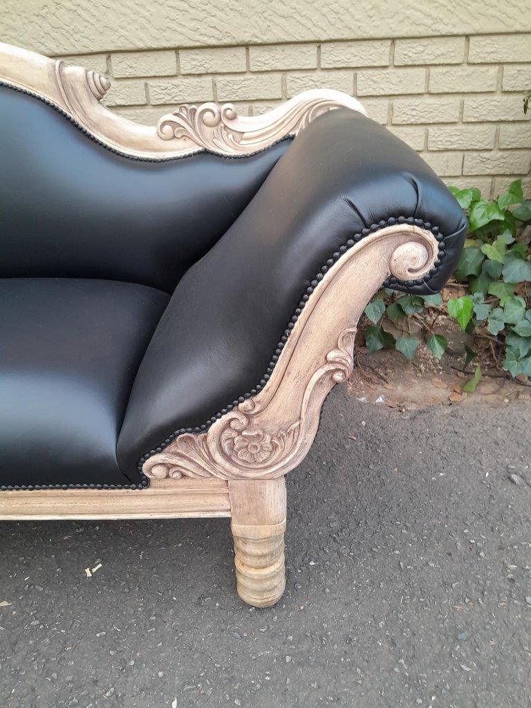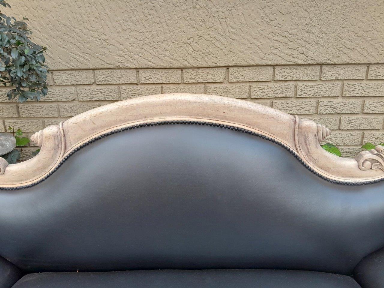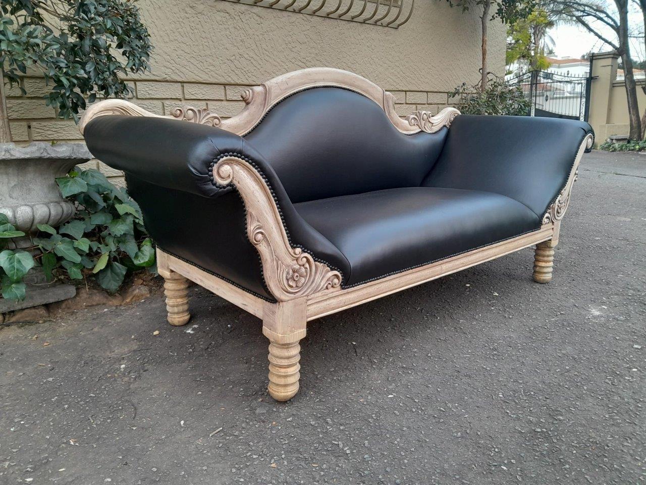 A 20th Century Carved Mahogany Wooden Settee With Brass Castors, Upholstered In Leather In A Bleached Contemporary Finish