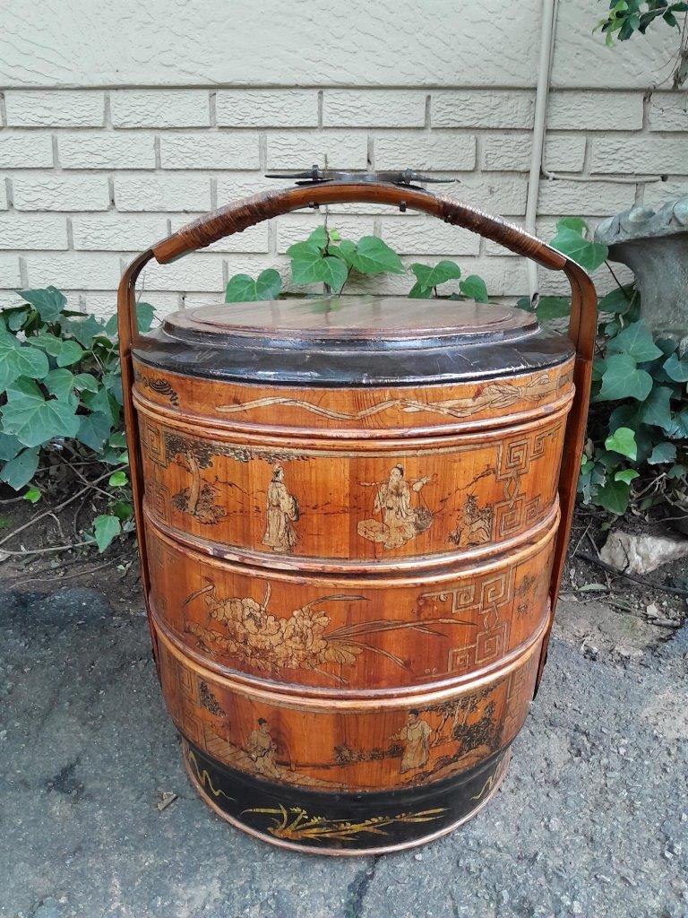 A 20th Century Chinese Bamboo And Gilt Painted Decorative Box