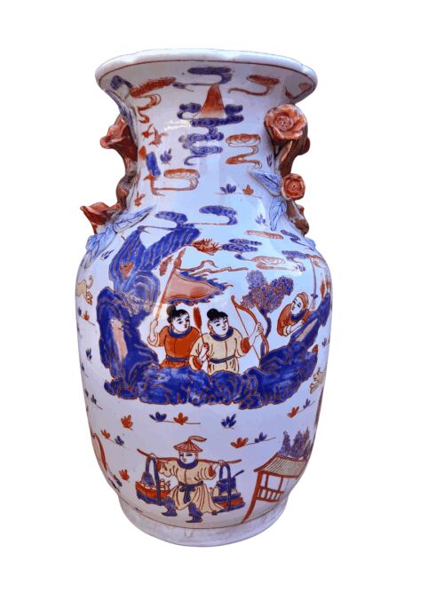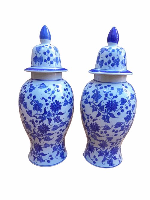 A 20th Century Chinese Blue And White Painted Vase With Lid