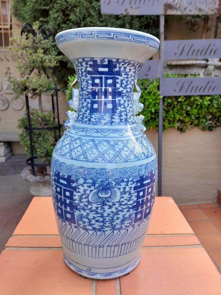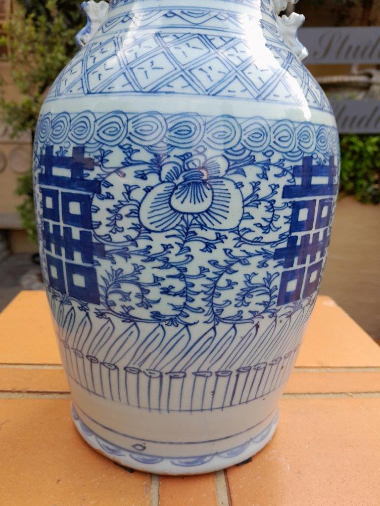 A 20th Century Chinese Blue/White Vase With Foo Dog Handles