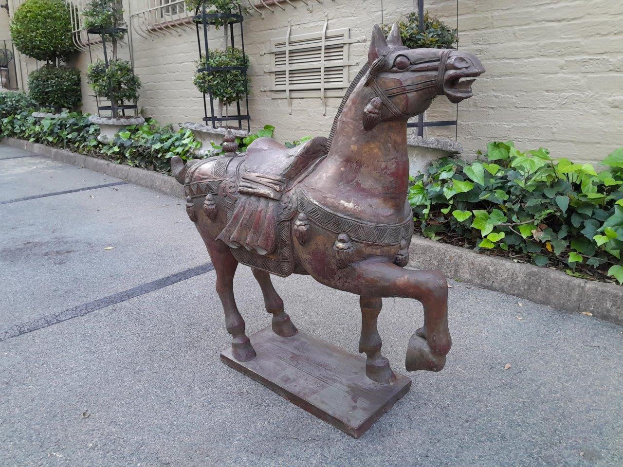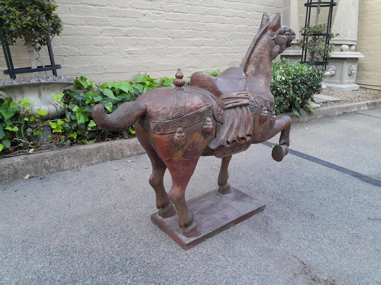 A 20th Century Chinese Carved Wooden Horse Of Large Proportions