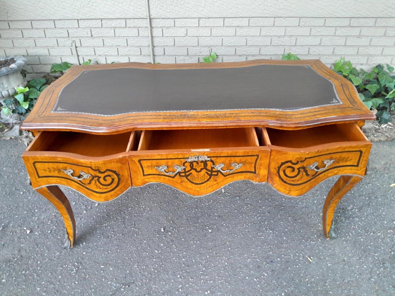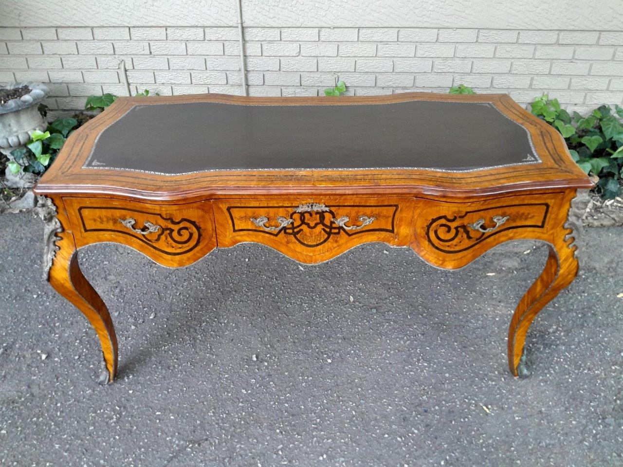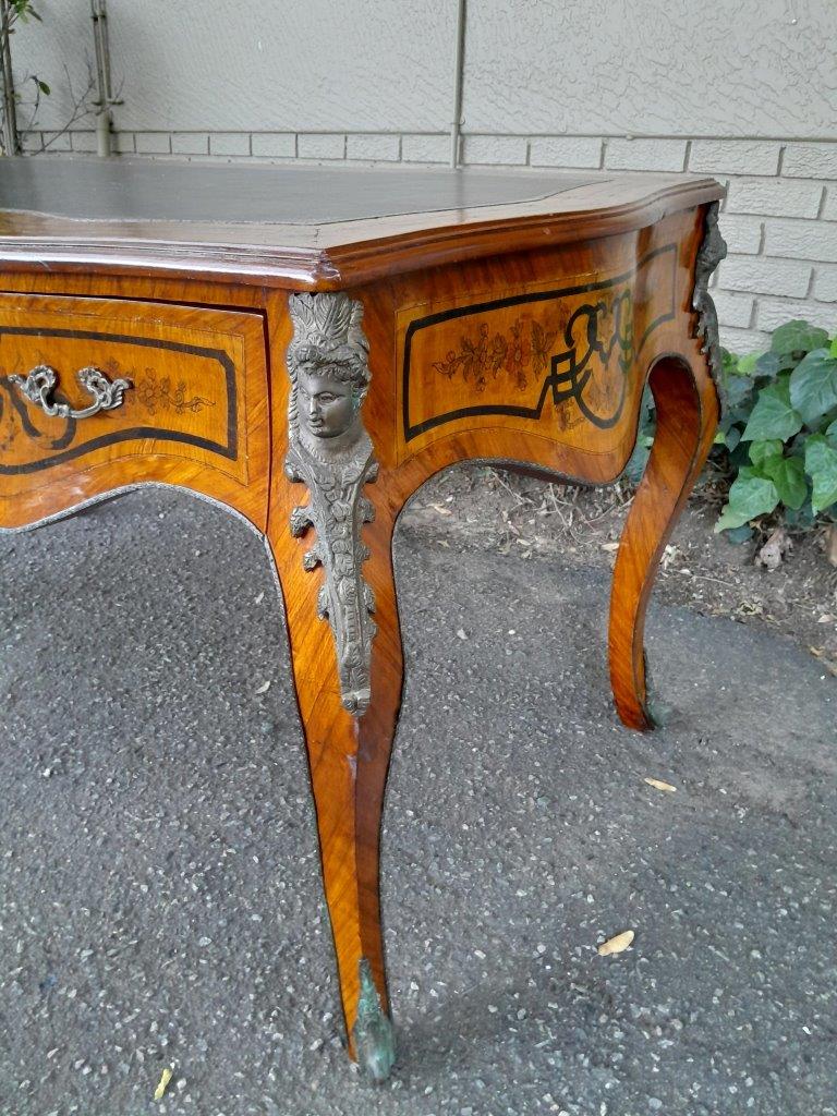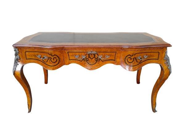 A 20th Century Circa 1940s Louis XV Style Walnut Painted Bureau Plat With Gilt Tooled Leather Insert And Three Drawers