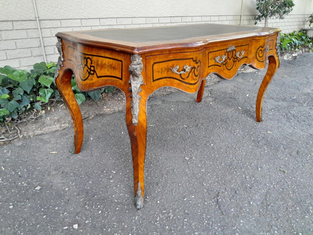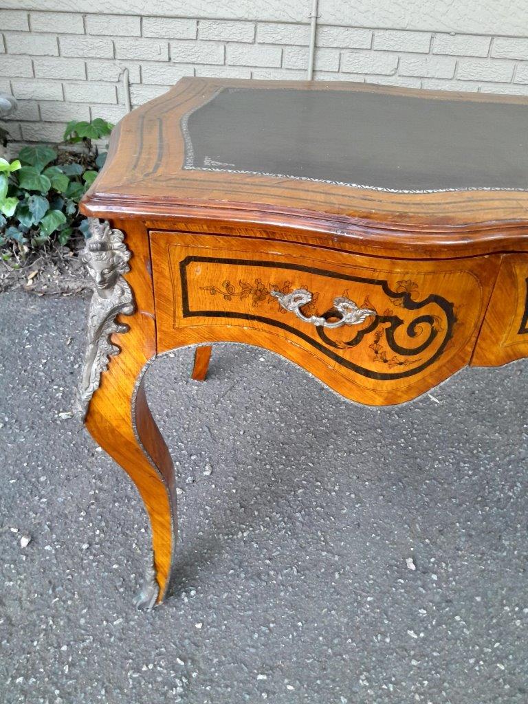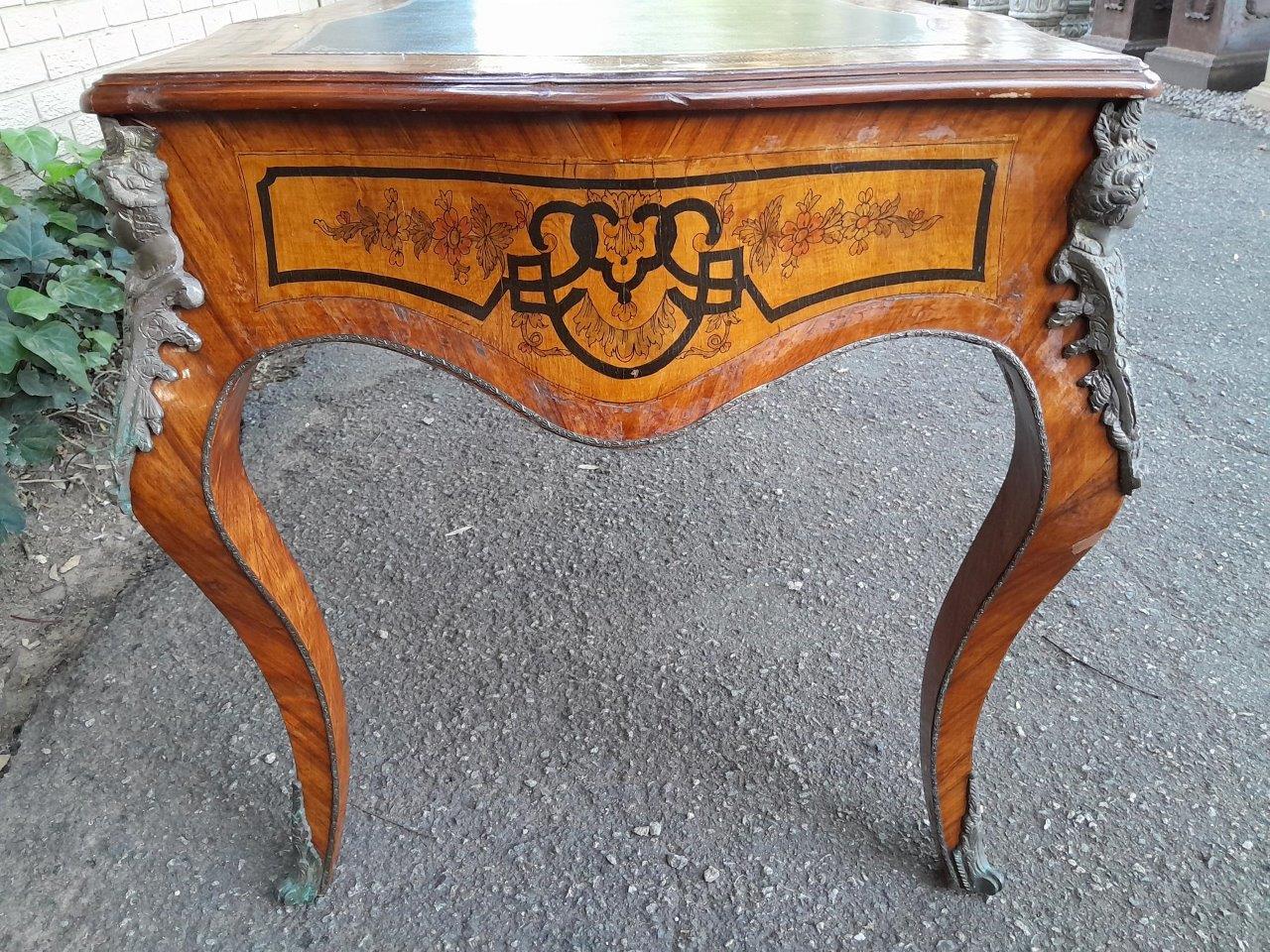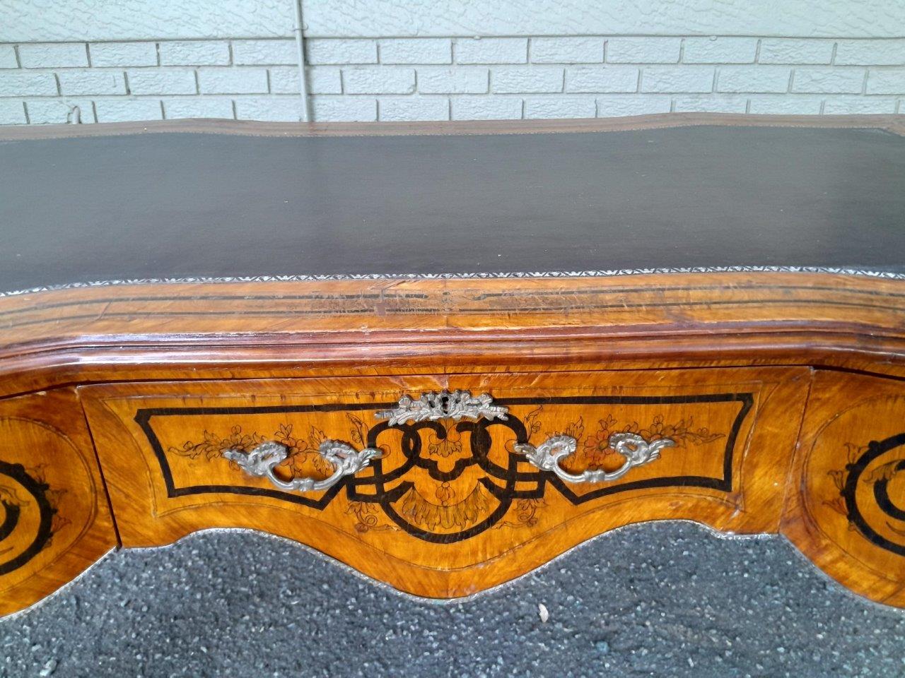 A 20th Century Circa 1940s Louis XV Style Walnut Painted Bureau Plat With Gilt Tooled Leather Insert And Three Drawers