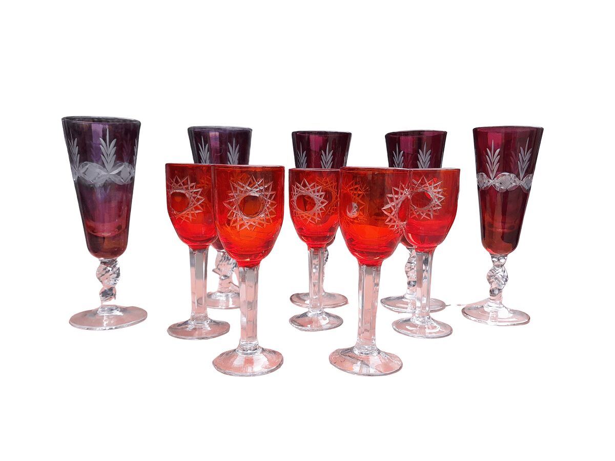 A 20th Century Collection Of Eleven Bohemian Cut Crystal Champagne And Sherry Glasses