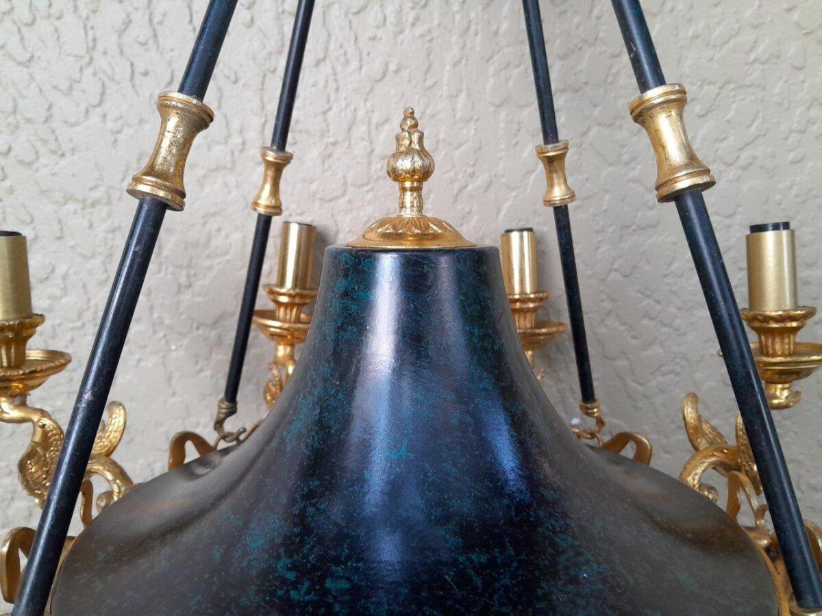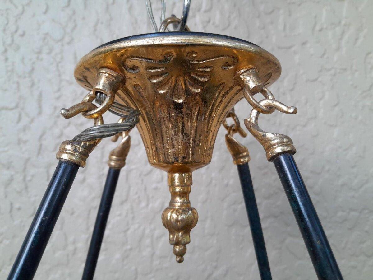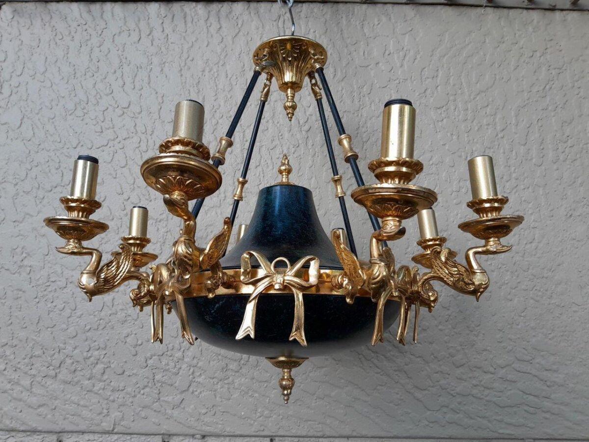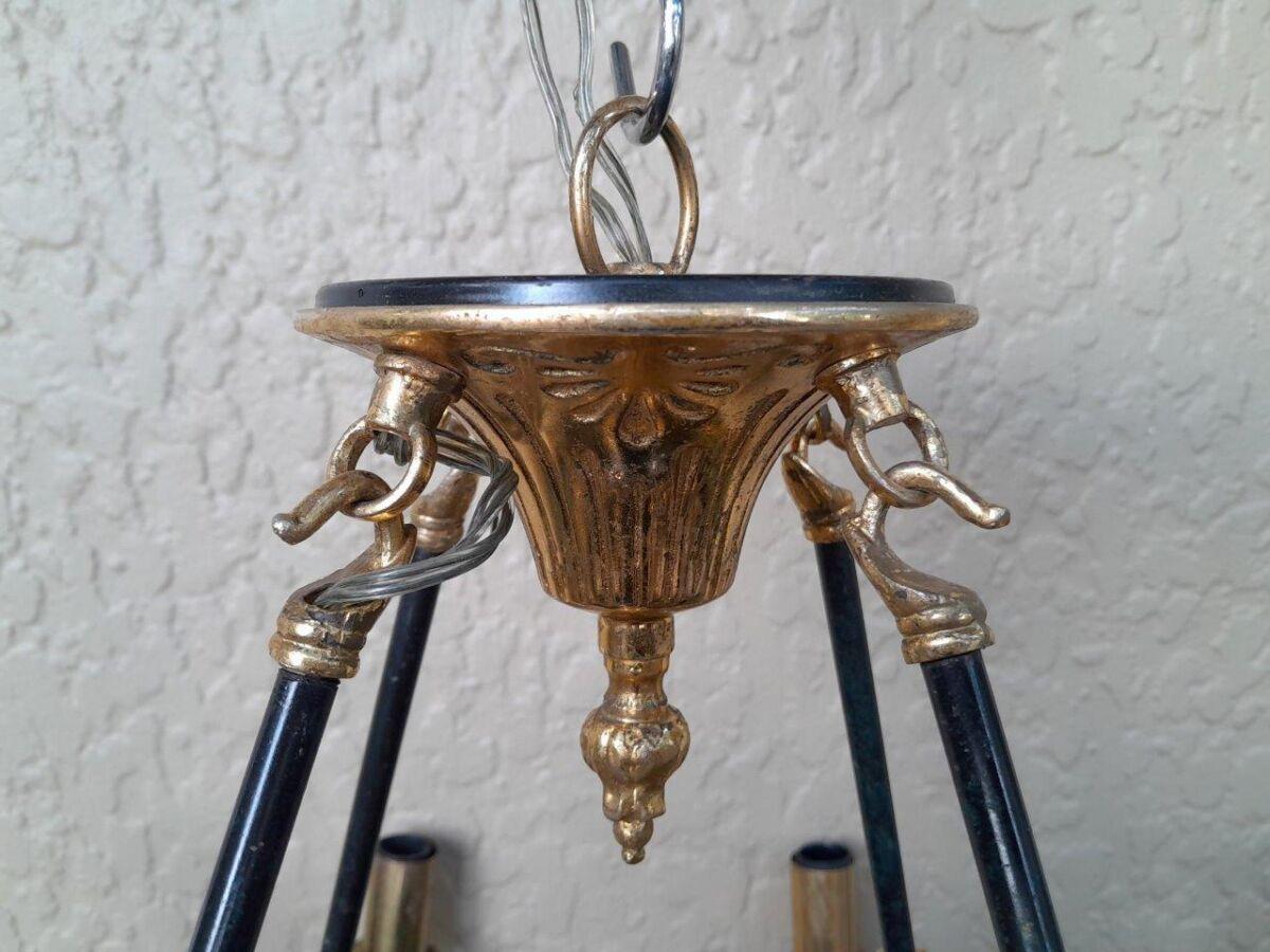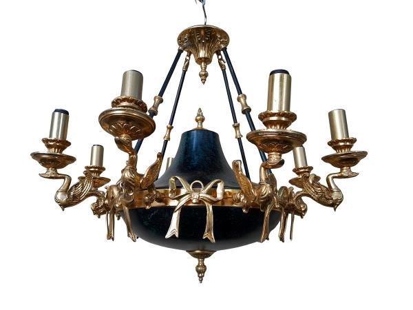 A 20th Century French Empire Style Gilt Metal And Black Chandelier