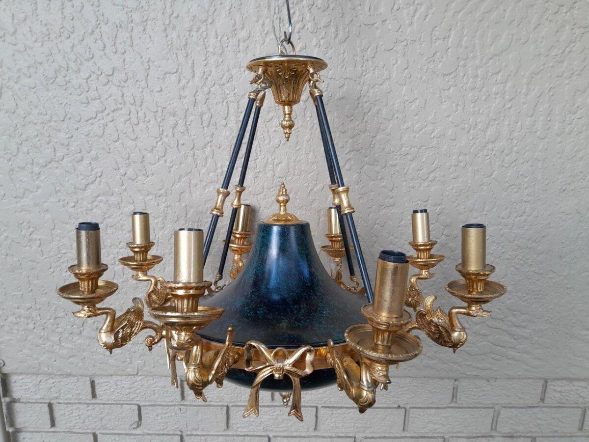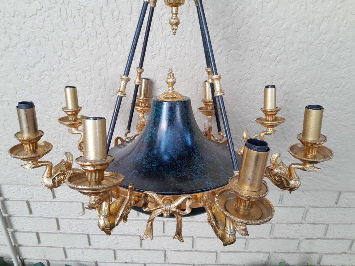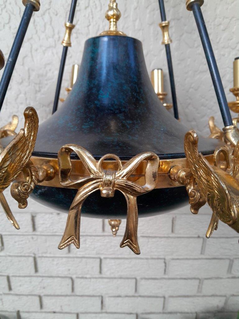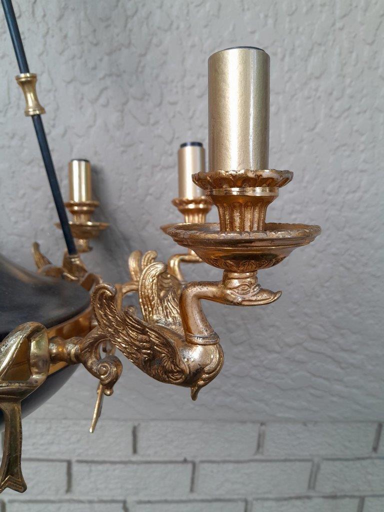 A 20th Century French Empire Style Gilt Metal And Black Chandelier