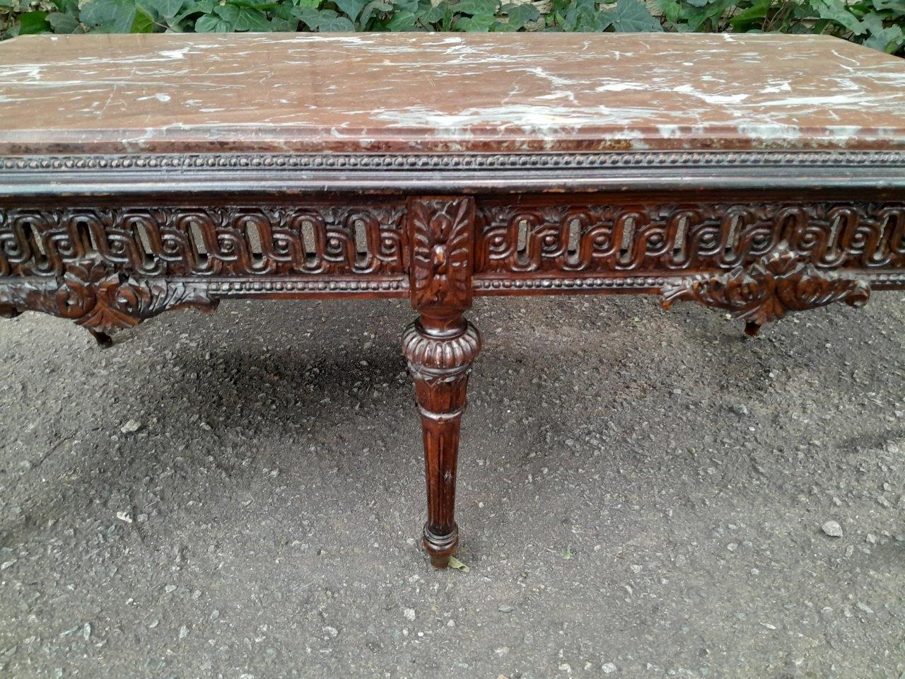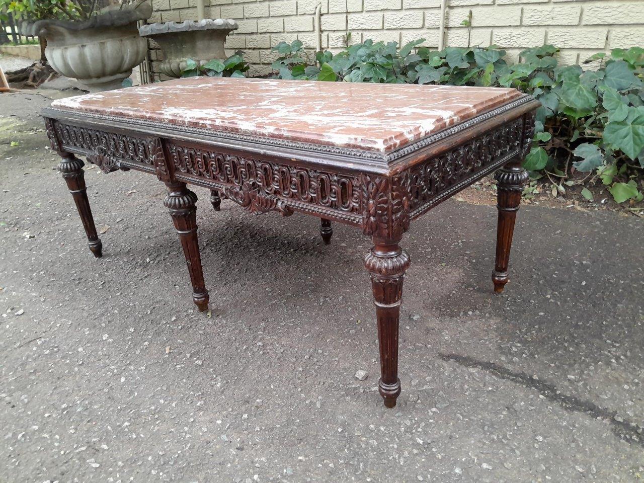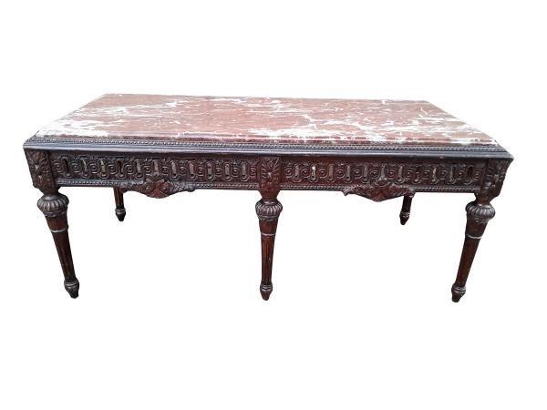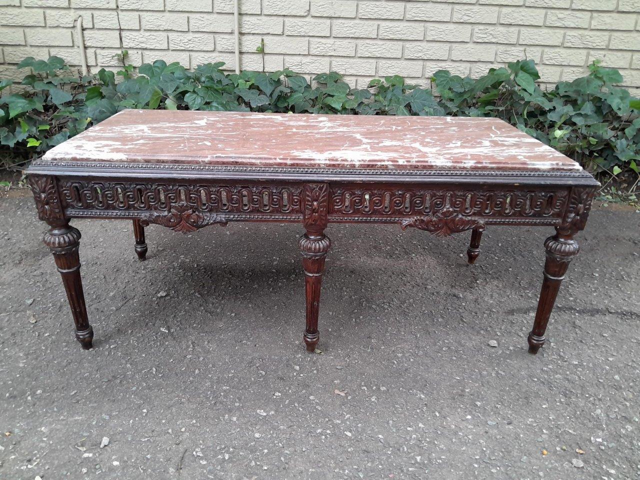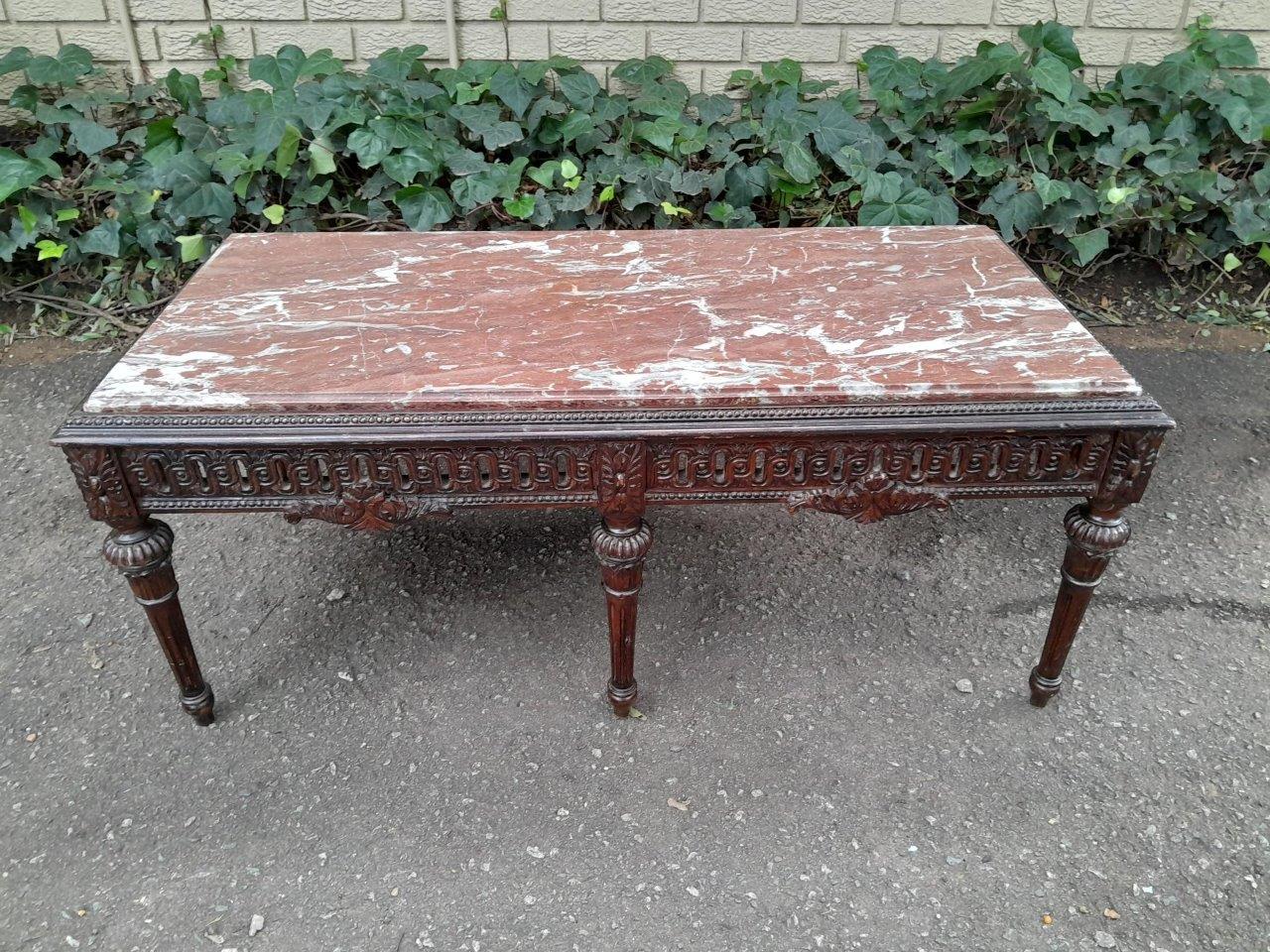 A 20th Century French Louis XV-Style Carved Coffee Table With Marble Top