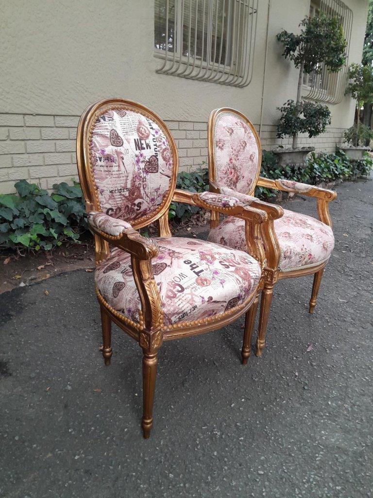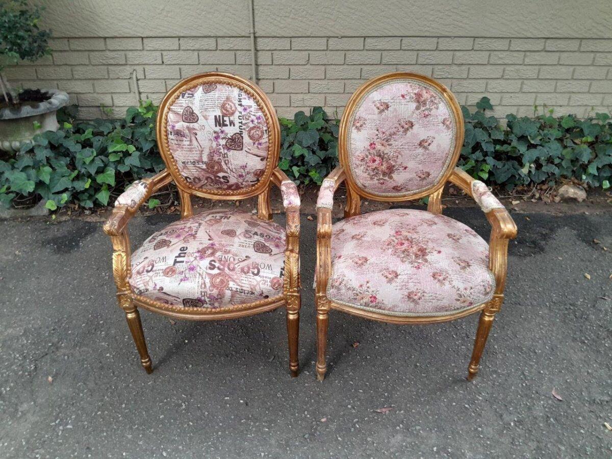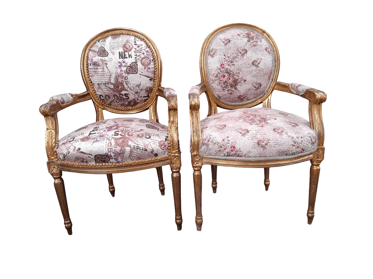 A 20th Century French Louis XVI Style Pair of Ornately Carved Gold Armchairs