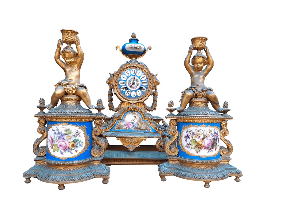 A 20th Century French Porcelain Cock Garniture Set (Three Piece)