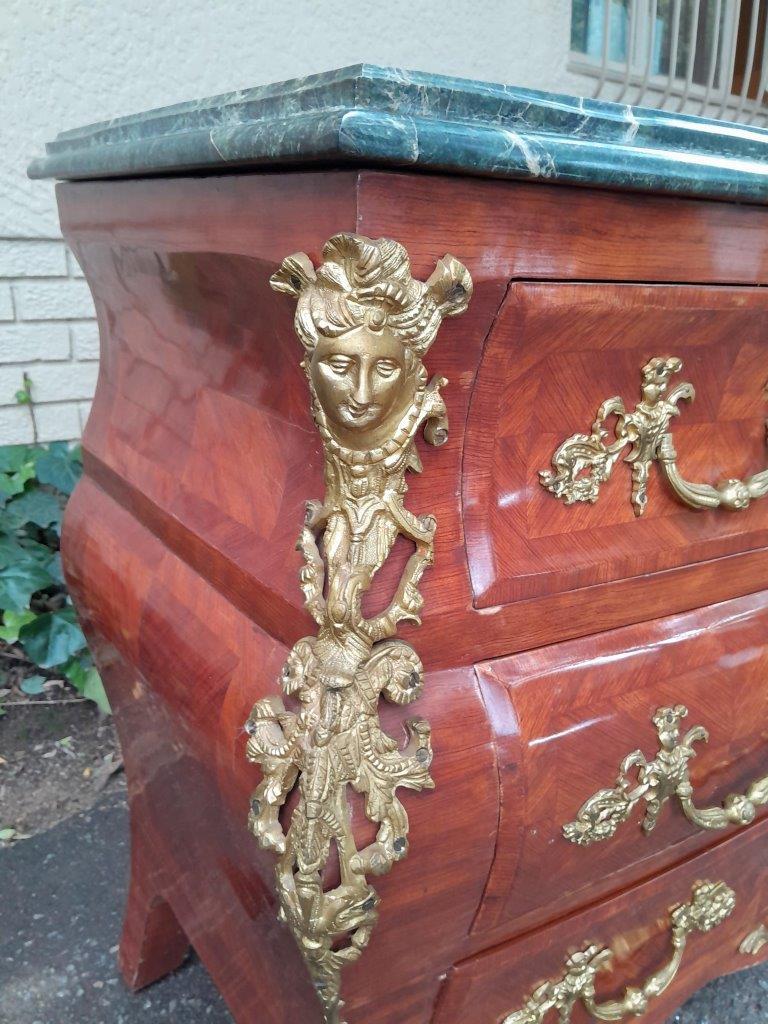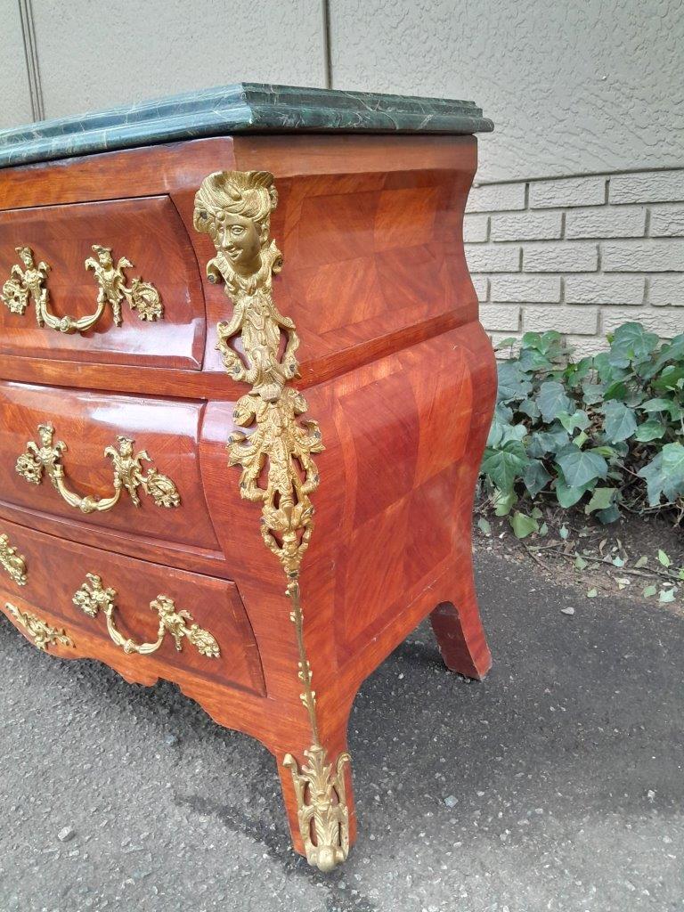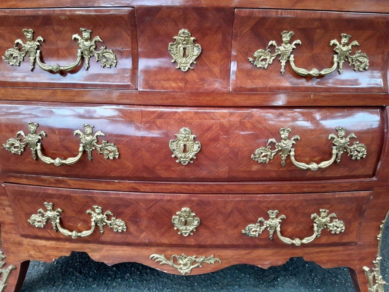 A 20th Century French Rococo Louis XVI Style Walnut Bombe Chest Of Drawers With Gilt Brass Mounts